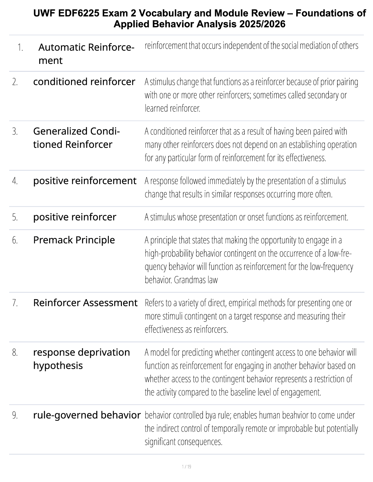 *NURSING > STUDY GUIDE > UWF EDF6225 Exam 2 Vocabulary and Module Review – Foundations of Applied Behavior Analysis 2025/2026