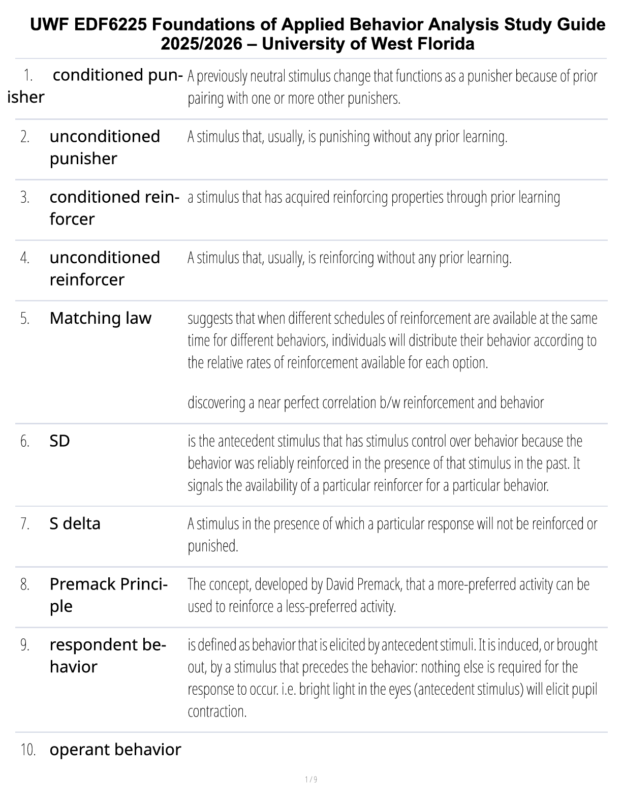 *NURSING > STUDY GUIDE > UWF EDF6225 Foundations of Applied Behavior Analysis (ABA) Exam 1 Study Guide 2025/2026 – University of West Florida