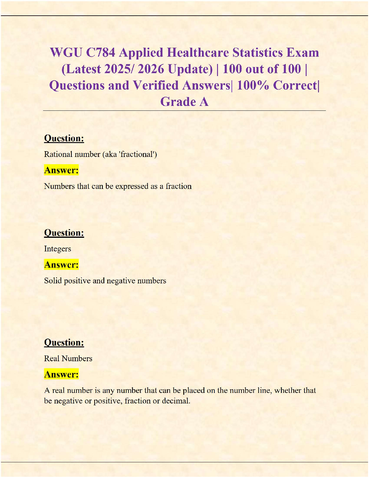 *NURSING > STUDY GUIDE > WGU C784 Applied Healthcare Statistics Exam (Latest 2025/2026 Update) | Verified Questions & Answers | 100% Correct | Grade A