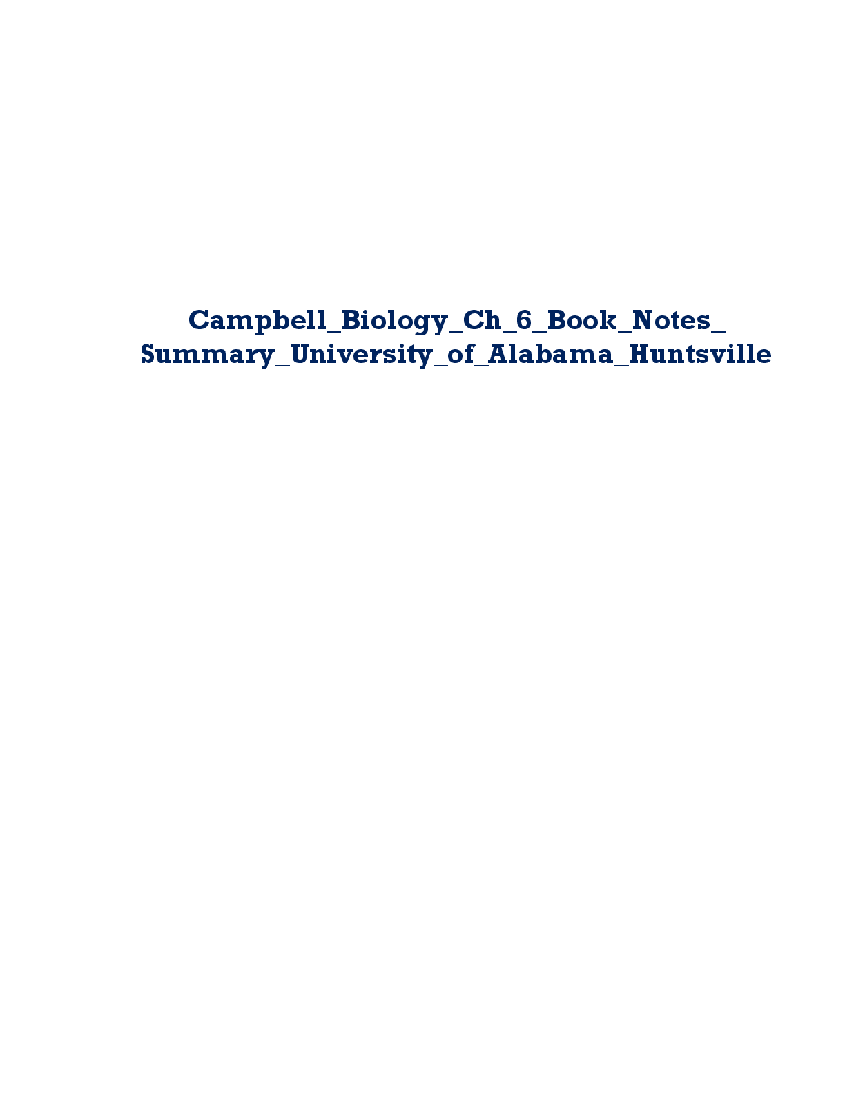 Biology > STUDY GUIDE > Campbell Biology Ch 6 Book Notes Summary University of Alabama Huntsville