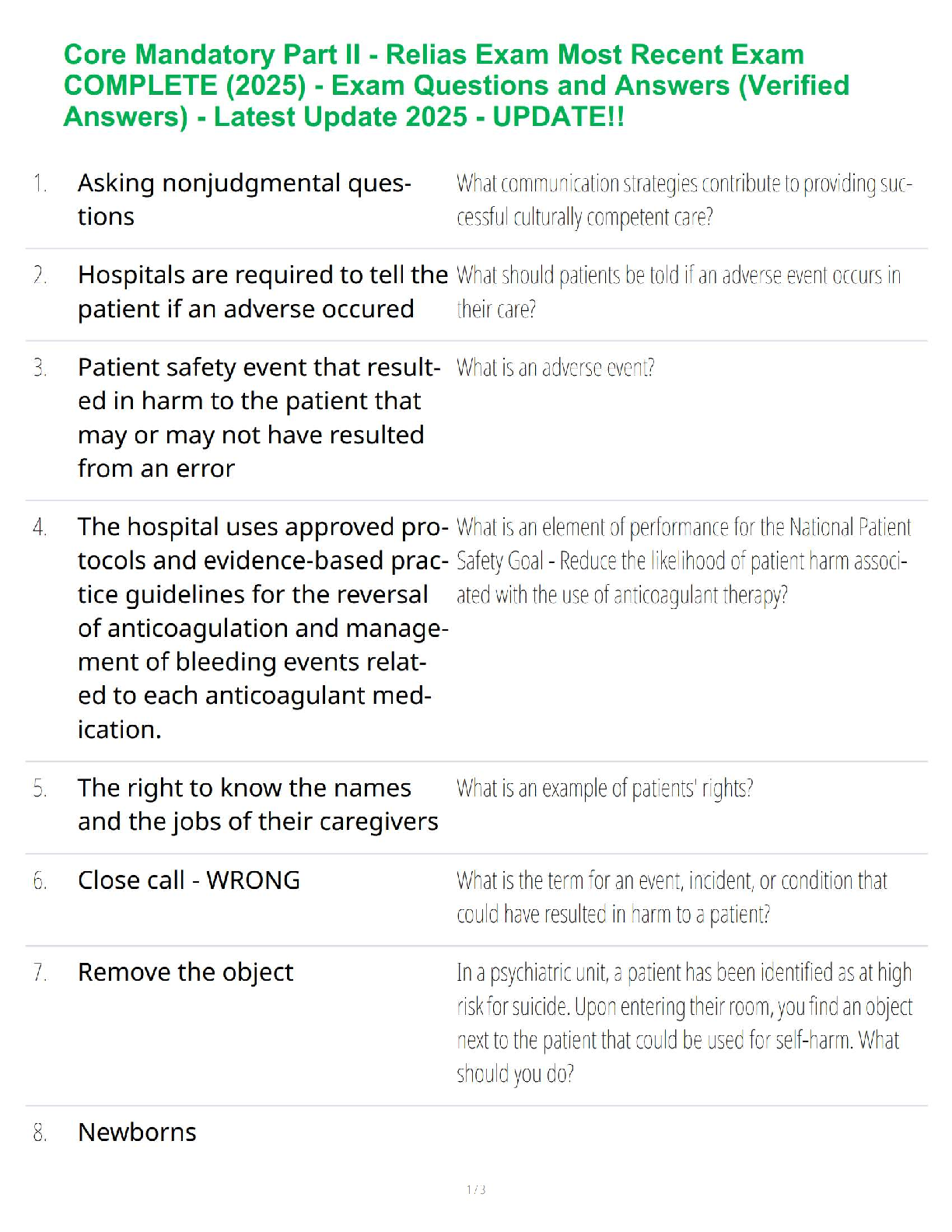 Health Care > STUDY GUIDE > Core Mandatory Part II - Relias Exam Most Recent Exam COMPLETE (2025) - Exam Questions and Answers (Verified Answers) - Latest Update 2025 - UPDATE!!