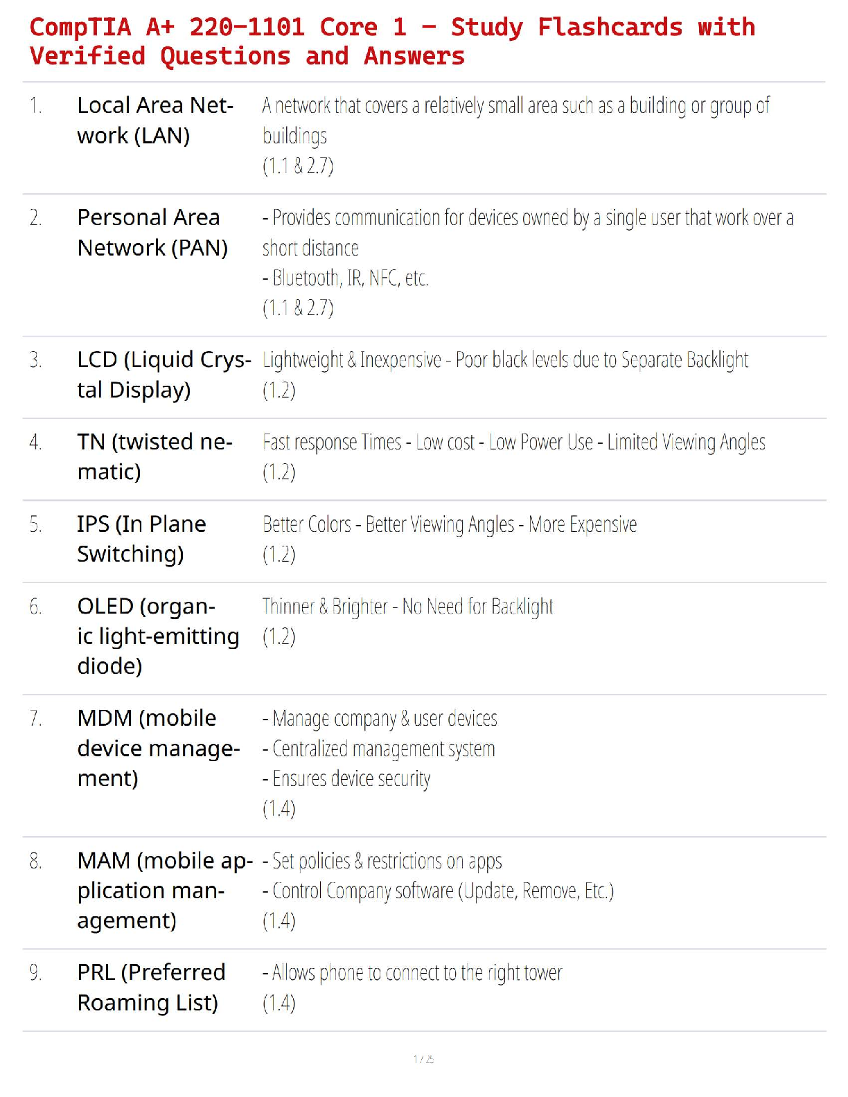 Computer Networking > STUDY GUIDE > CompTIA A+ 220-1101 Core 1 – Study Flashcards with Verified Questions and Answers