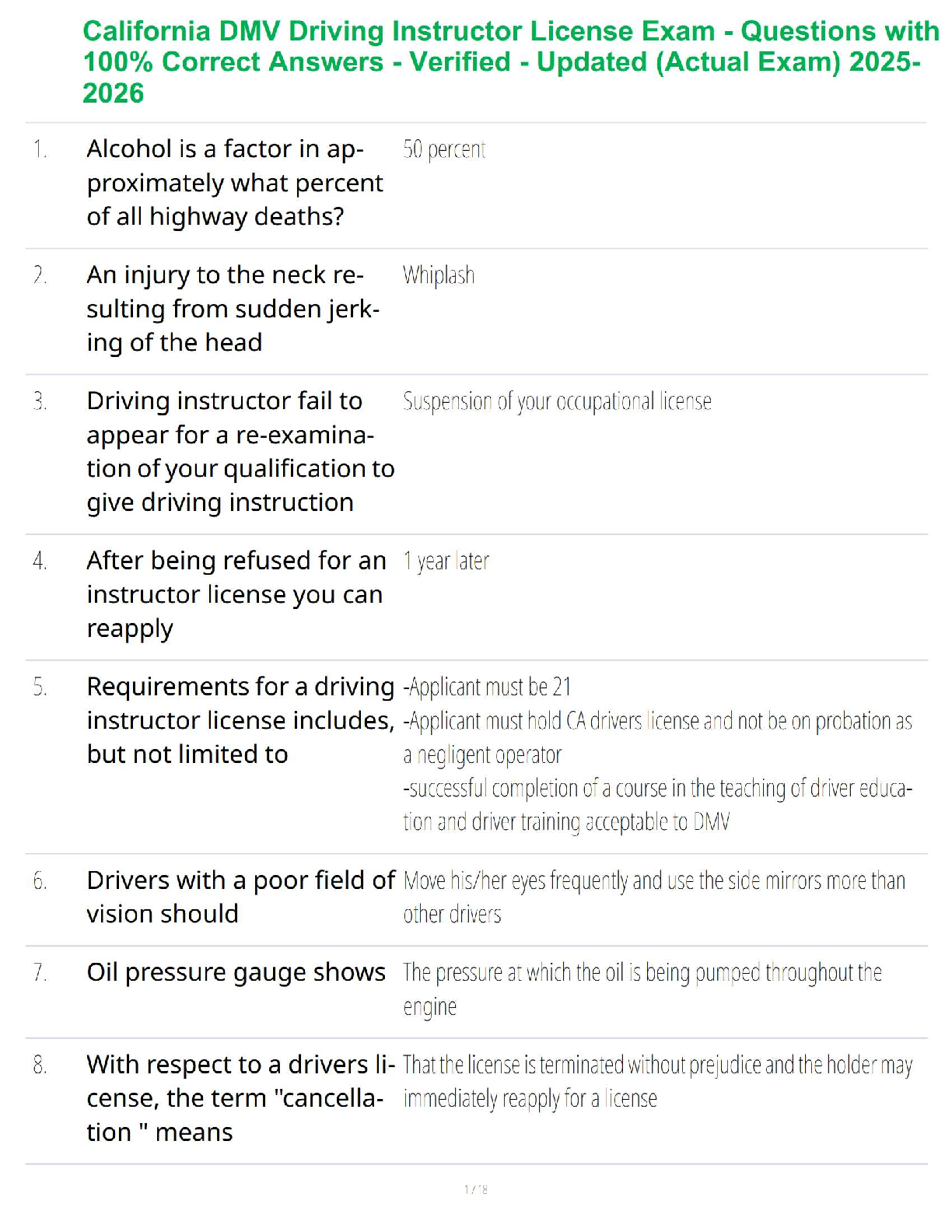 Driving Course > STUDY GUIDE > California DMV Driving Instructor License Exam - Questions with 100% Correct Answers - Verified - Updated (Actual Exam) 2025-2026