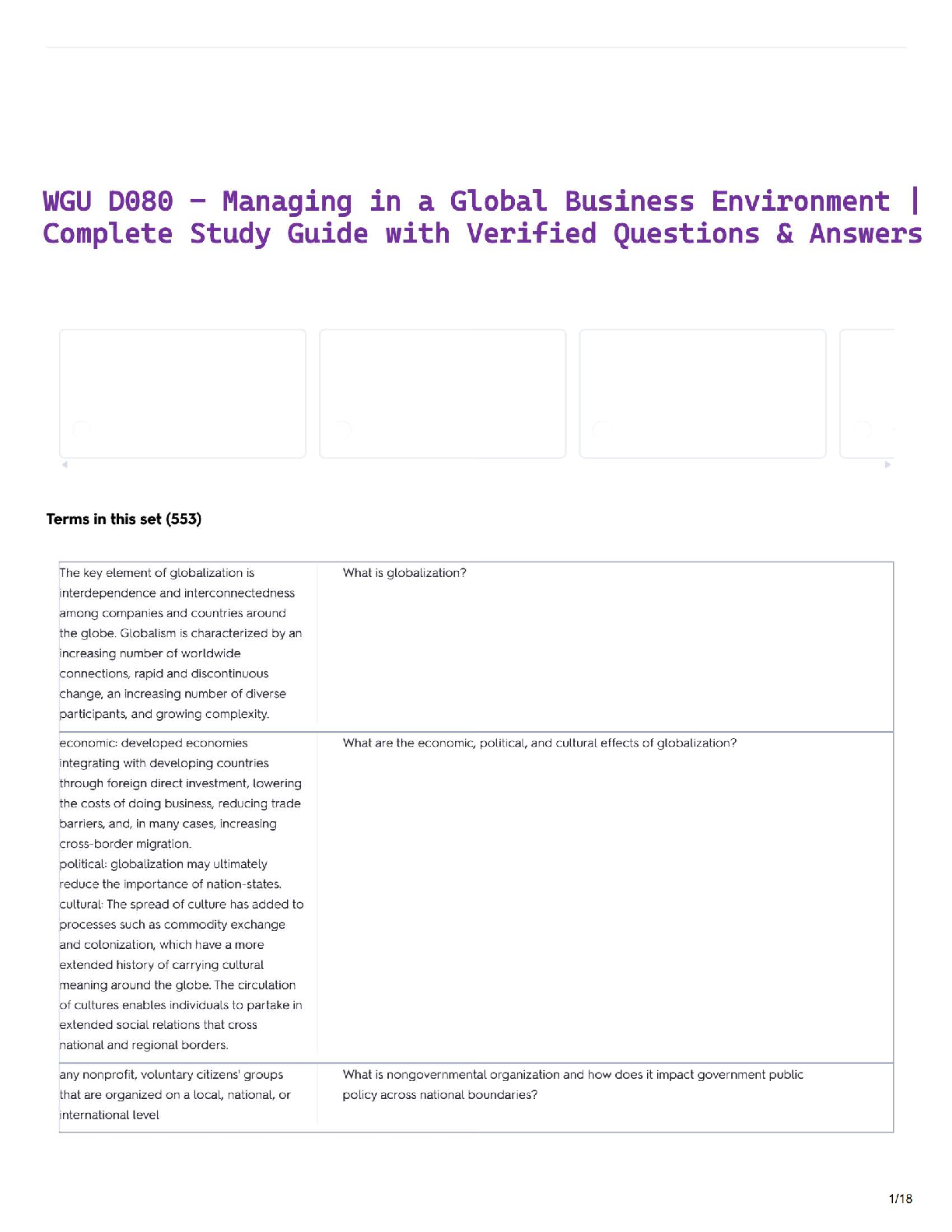 Business Management > STUDY GUIDE > WGU D080 – Managing in a Global Business Environment | Complete Study Guide with Verified Questions & Answers
