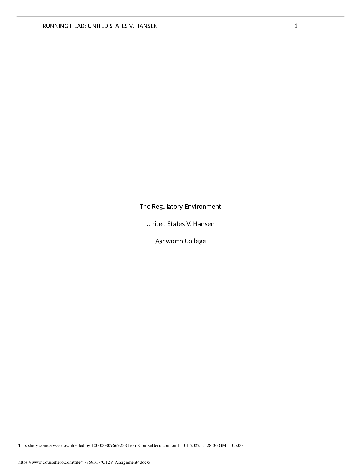 BusinessSummary  > Summary C12 Case Analysis 2 - United States V. Hansen|Latest complete solution guide