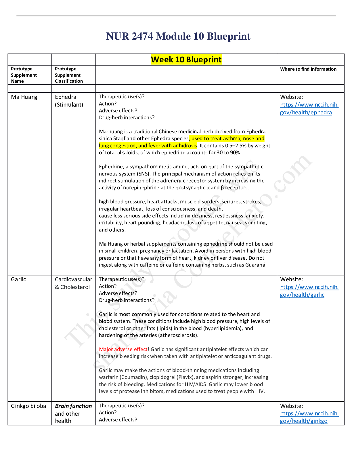*NURSING > Summary > NUR2474 / NUR 2474 Module 10 Blueprint (Latest 2021 / 2022): Pharmacology for Professional Nursing - Rasmussen