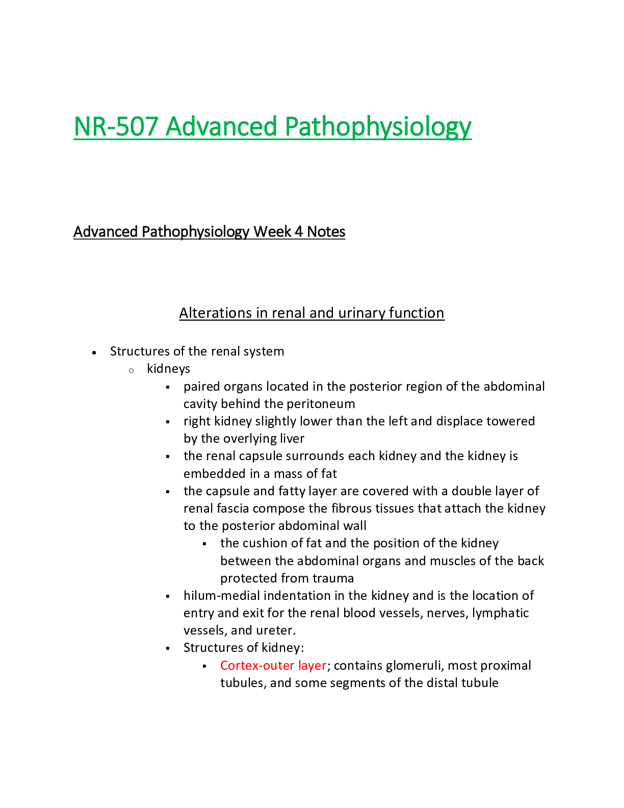 *NURSING > Summary > NR507 / NR 507 Week 4 Notes : Advanced Pathophysiology - Chamberlain