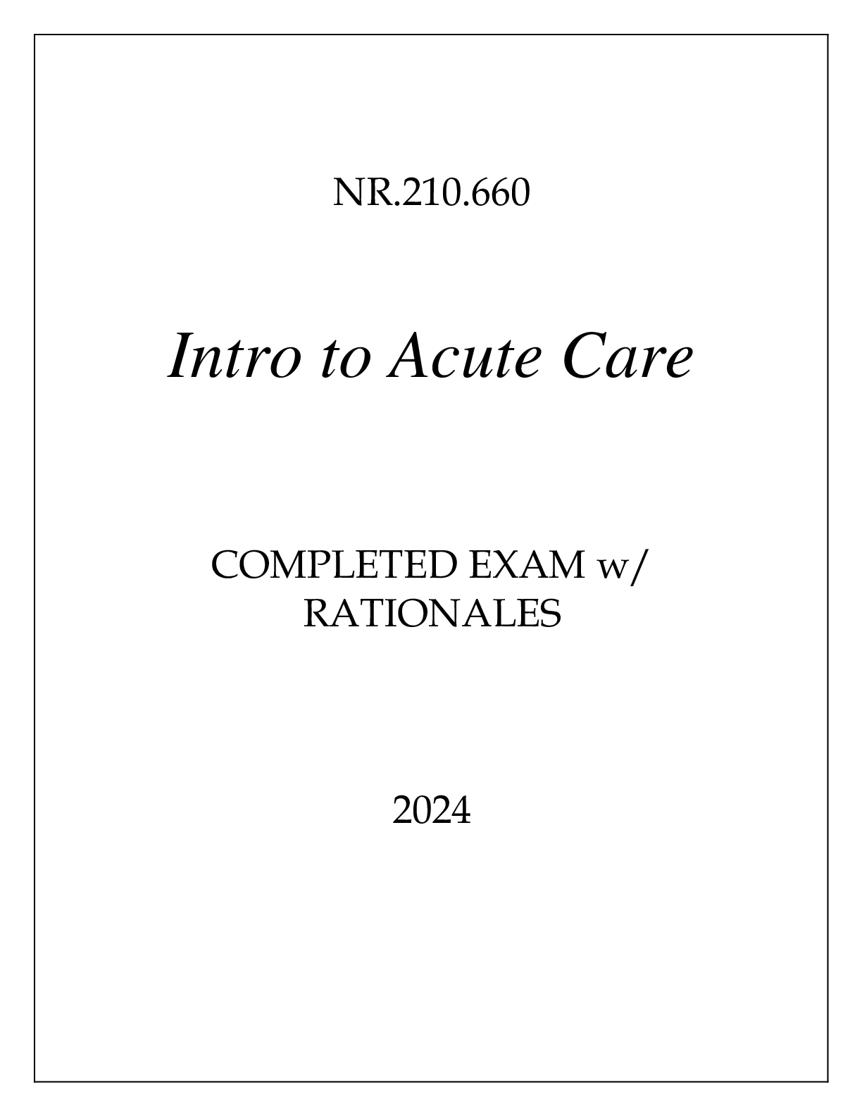 *NURSING > EXAM PROCTORED > NR.210.660 INTRO TO ACUTE CARE COMPLETED EXAM WITH RATIONALES 2024