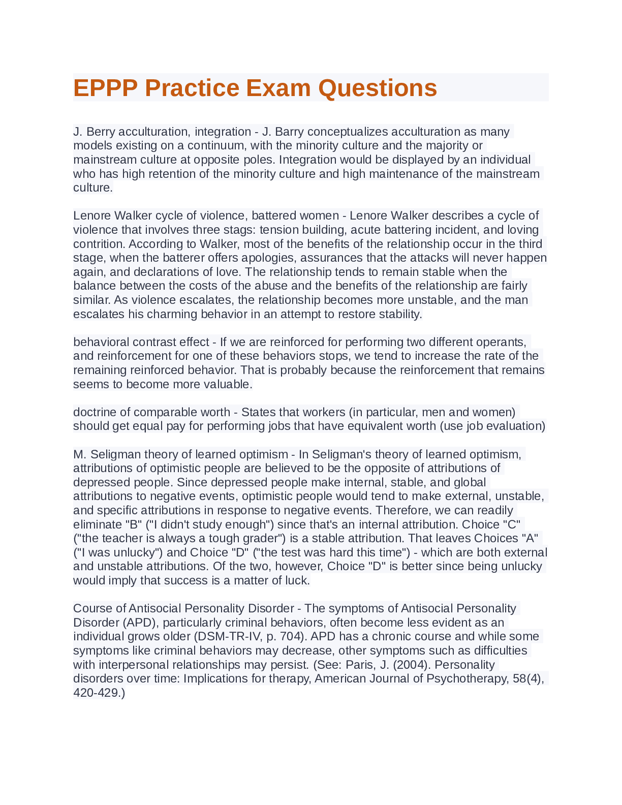 *NURSING > EXAM PROCTORED > EPPP Psychology Licensing Exam 200 QUESTIONS WITH COMPLETE SOLUTIONS
