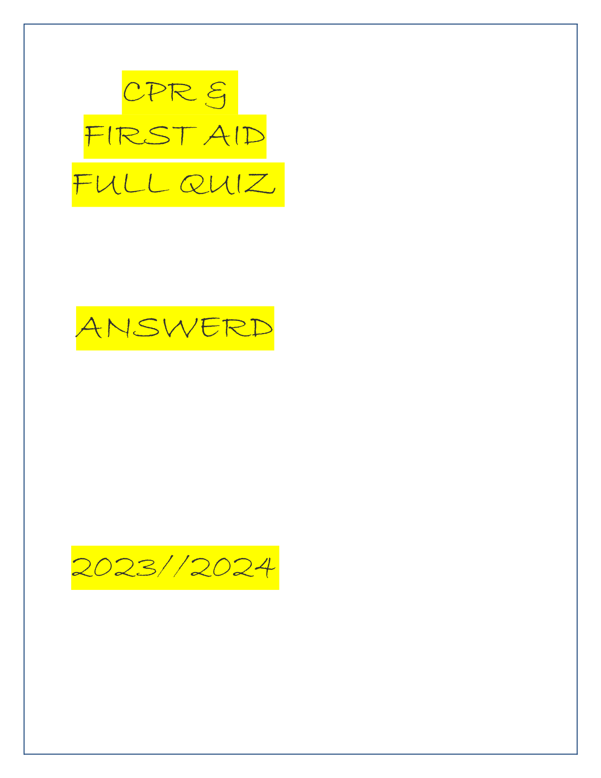 *NURSING > EXAM PROCTORED > cpr & first aid full quiz answered 20232024