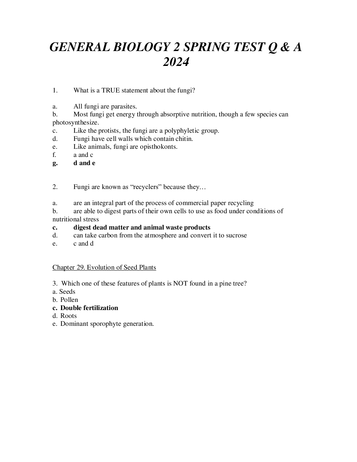 *NURSING > EXAM PROCTORED > GENERAL BIOLOGY 2 SPRING TEST Q & A 2024