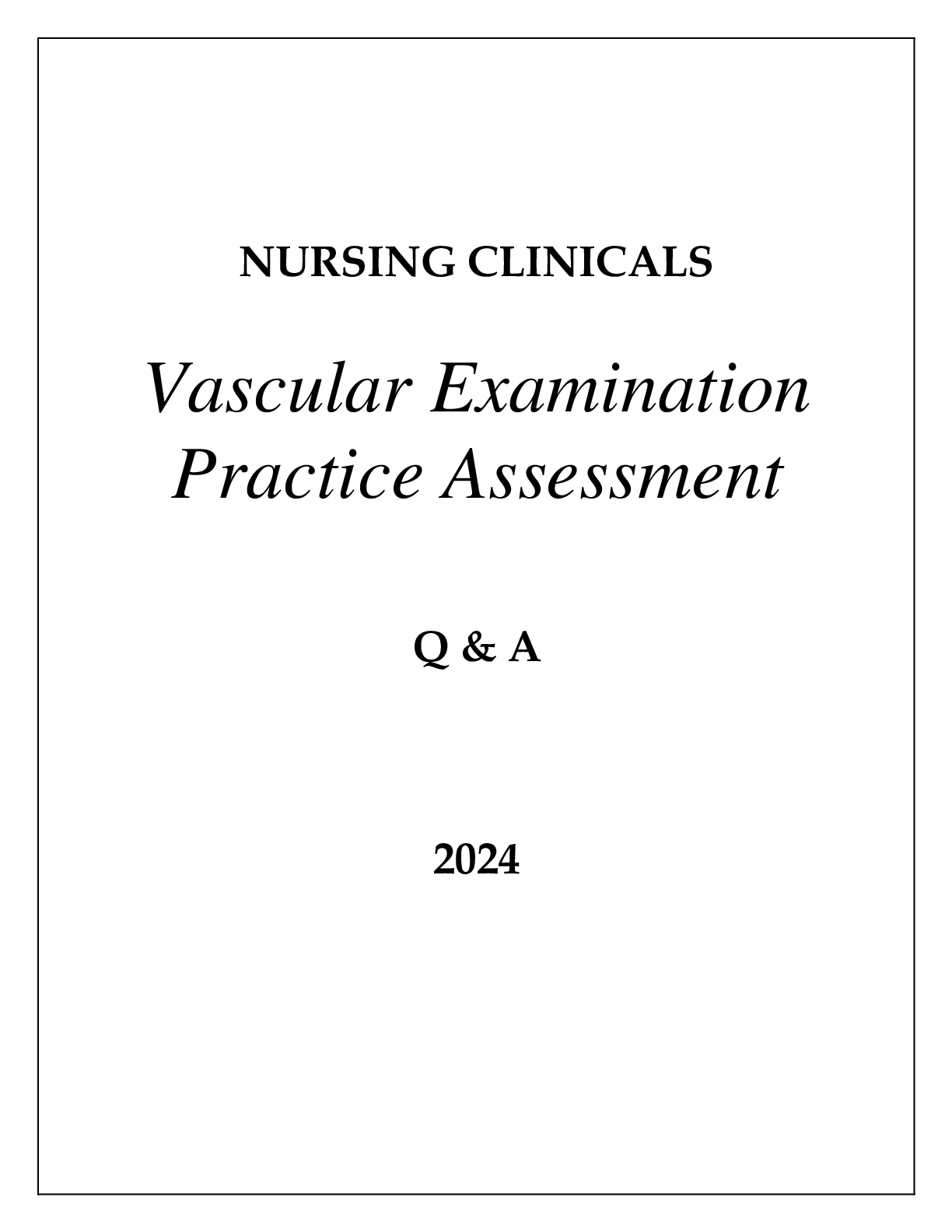 *NURSING > EXAM PROCTORED > NURSING CLINICALS VASCULAR EXAMINATION PRACTICE ASSESSMENT Q & A 2024