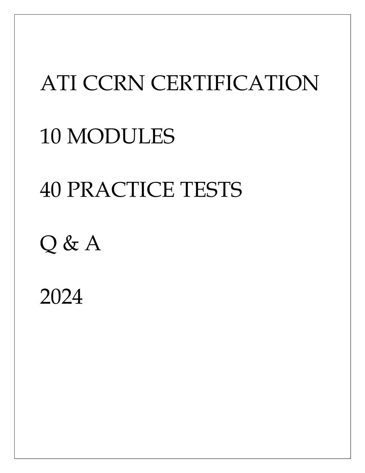 *NURSING > EXAM PROCTORED > ATI CCRN CERTIFICATION 10 MODULES 40 PRACTICE TESTS Q & A 2024