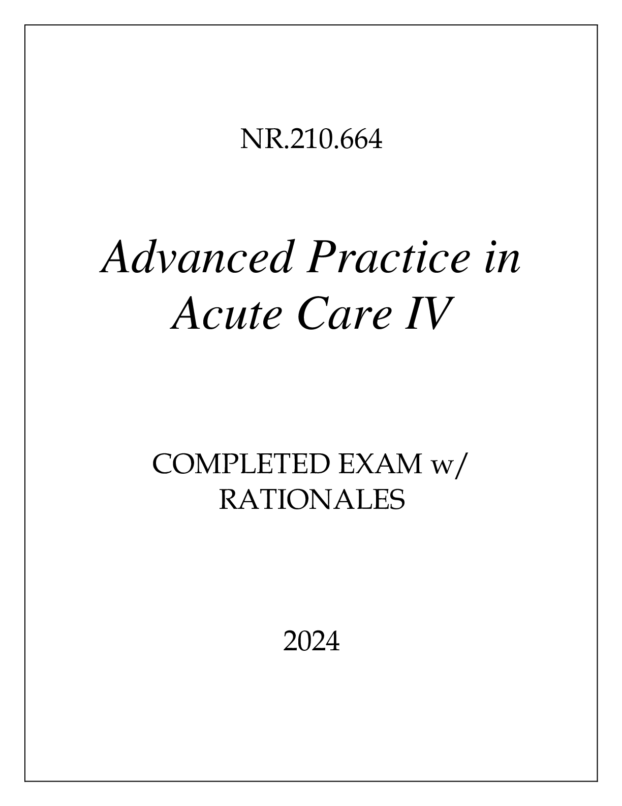 *NURSING > EXAM PROCTORED > NR.210.664 ADVANCED PRACTICE IN ACUTE CARE IV COMPLETED EXAM WITH RATIONALES 2024