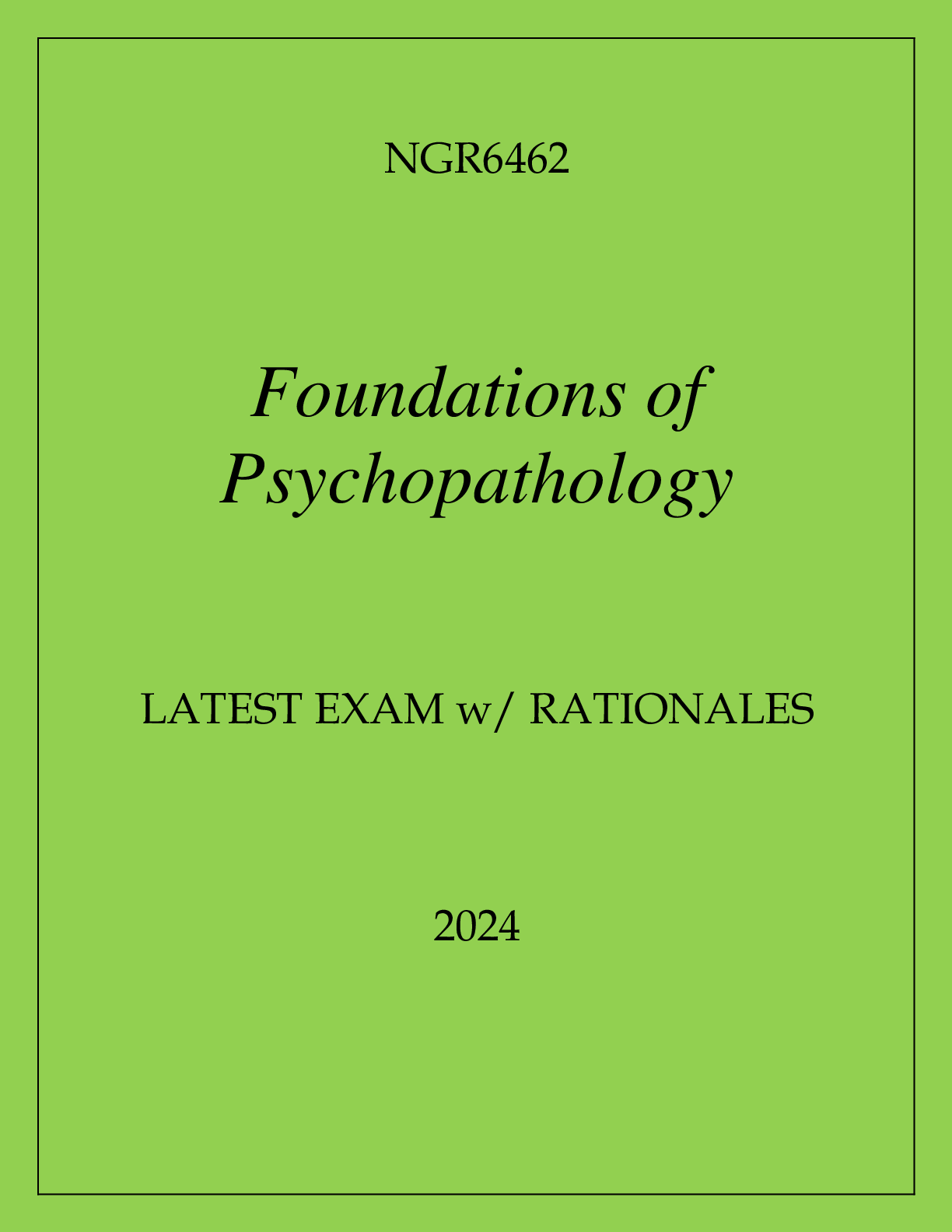 *NURSING > EXAM PROCTORED > NGR6462 FOUNDATIONS OF PSYCHOPATHOLOGY LATEST EXAM WITH RATIONALES 2024