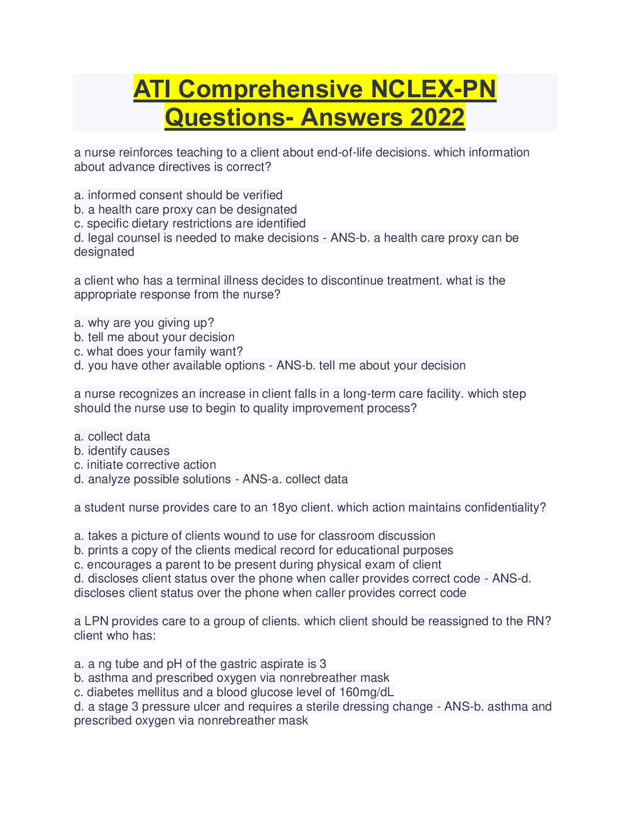 *NURSING > NCLEX-PN > ATI Comprehensive NCLEX-PN Questions- Answers 2022