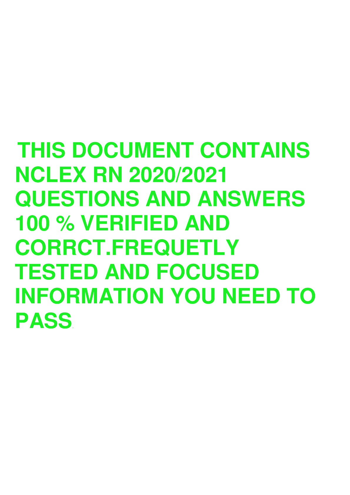 *NURSING > NCLEX-RN > NCLEX RN 2020/2021 QUESTIONS AND ANSWERS 100 % VERIFIED AND CORRECT�.Already Graded A