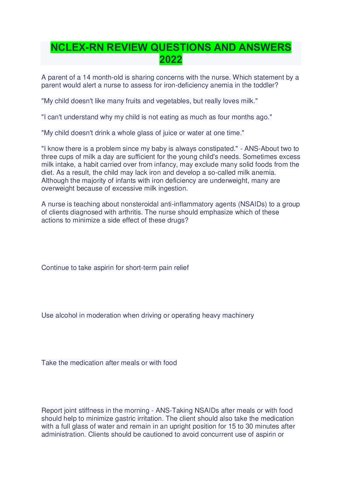 *NURSING > NCLEX-RN > NCLEX-RN REVIEW QUESTIONS AND ANSWERS 2022