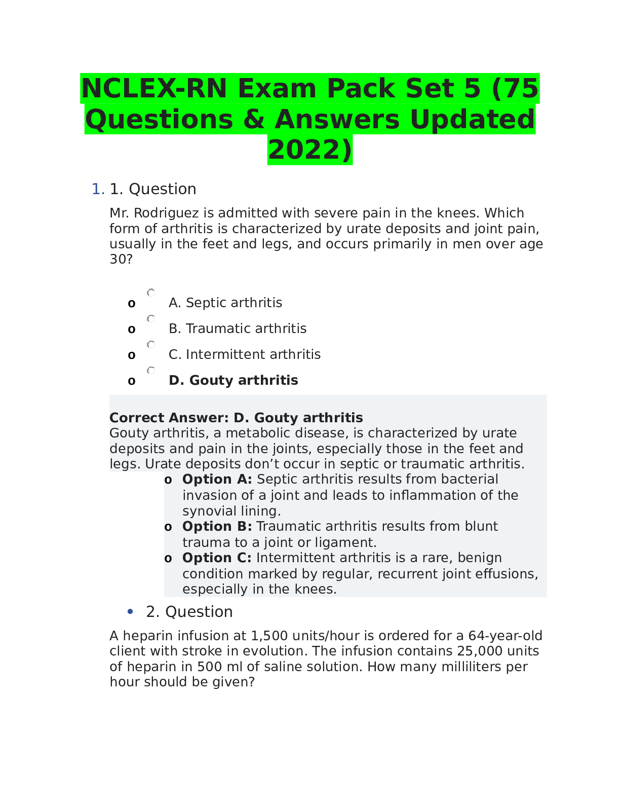 *NURSING > NCLEX-RN > NCLEX-RN Exam Pack Set 7 (75 Questions & Answers Updated 2022)