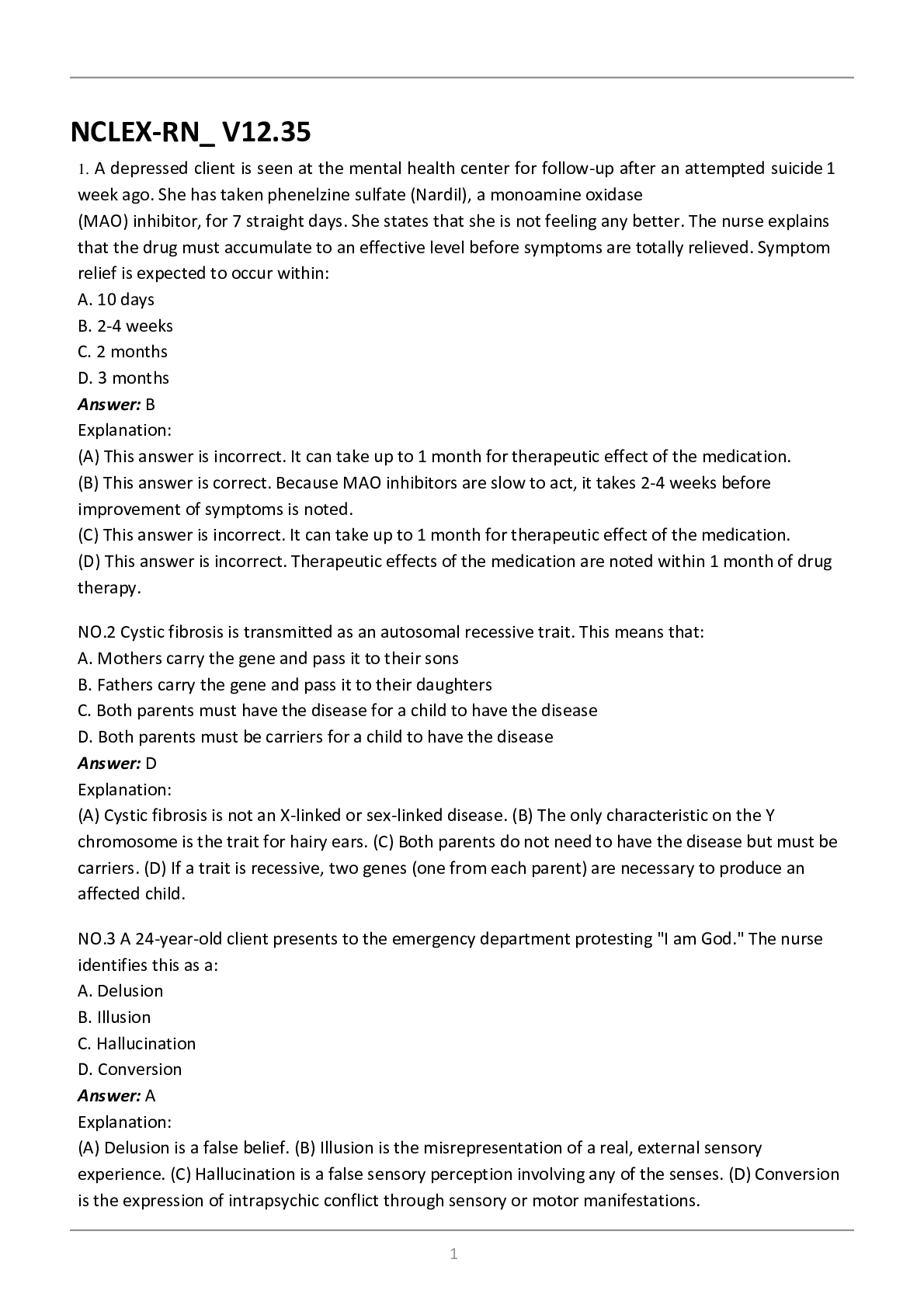 *NURSING > NCLEX-RN > NCLEX-RN Pharmacological & Parenteral Therapies 1 Practice Test Questions and Answers (2021), Latest Questions and Answers with Explanations, All Correct Study Guide, Download to Score A