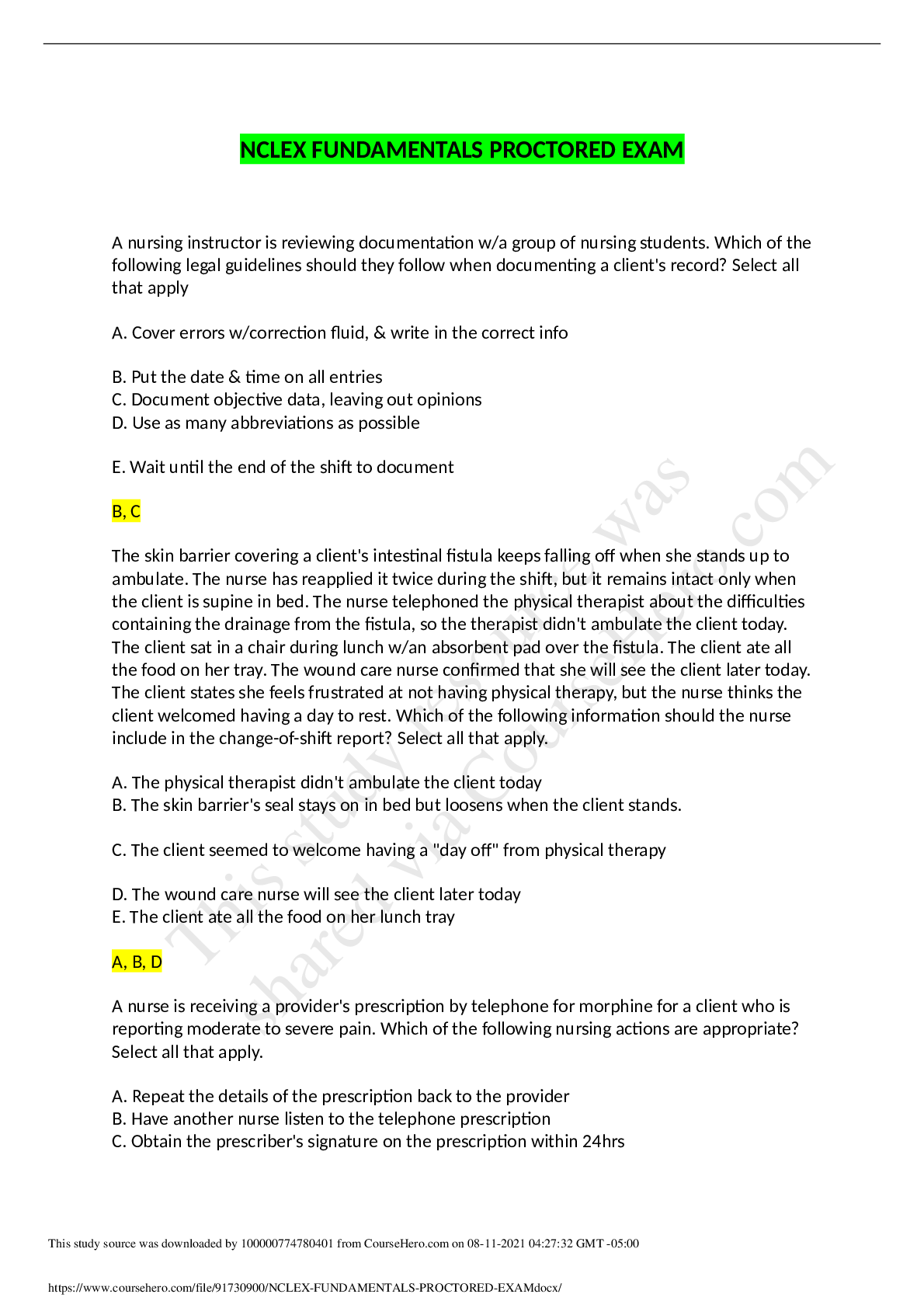 *NURSING > NCLEX-RN > NCLEX FUNDAMENTALS PROCTORED EXAM