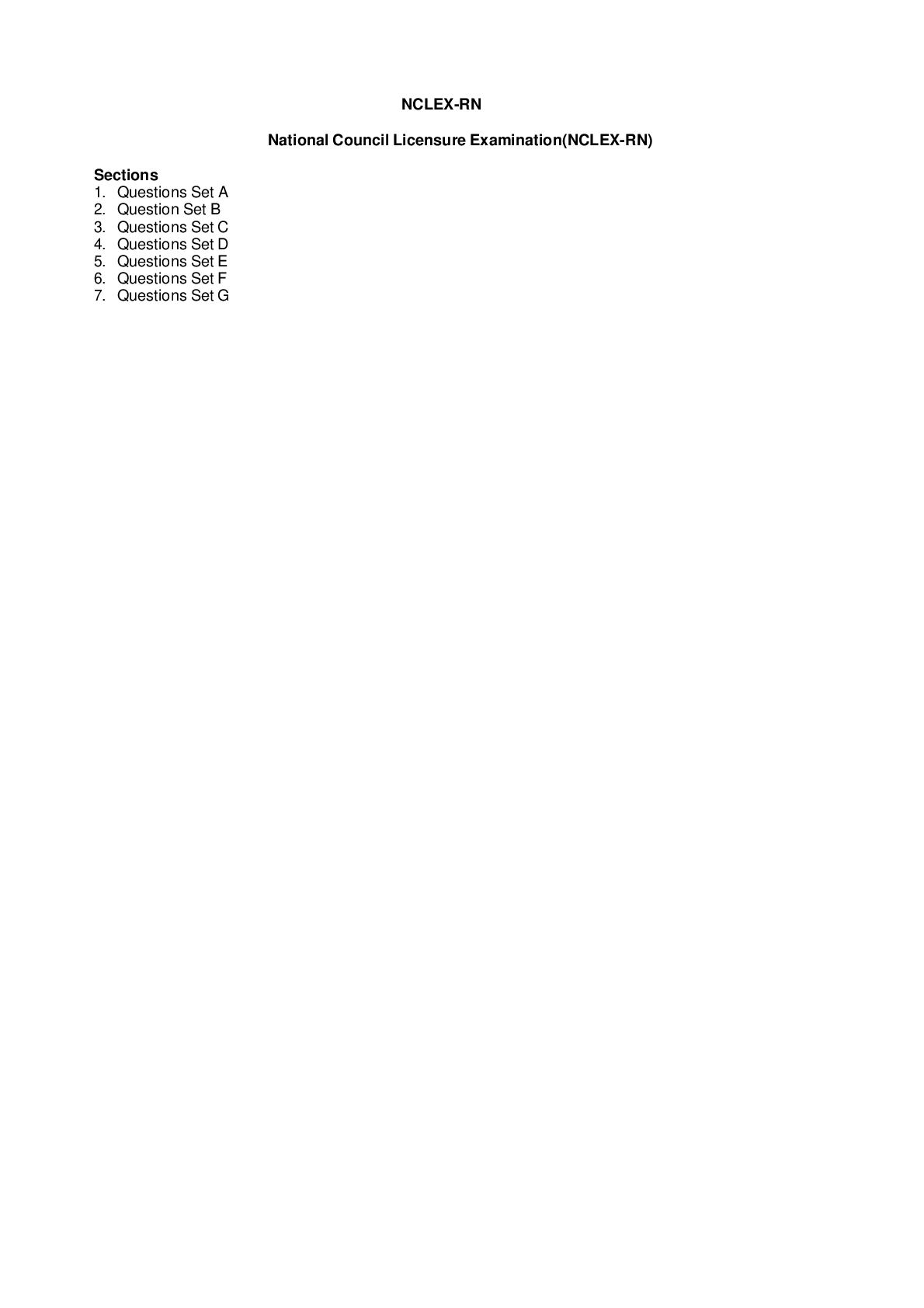 *NURSING > NCLEX-RN > NCLEX RN 515 EXAMS WITH QUESTIONS SETS A-G,CORRECT ANSWERS AND EXPLANATIONS.