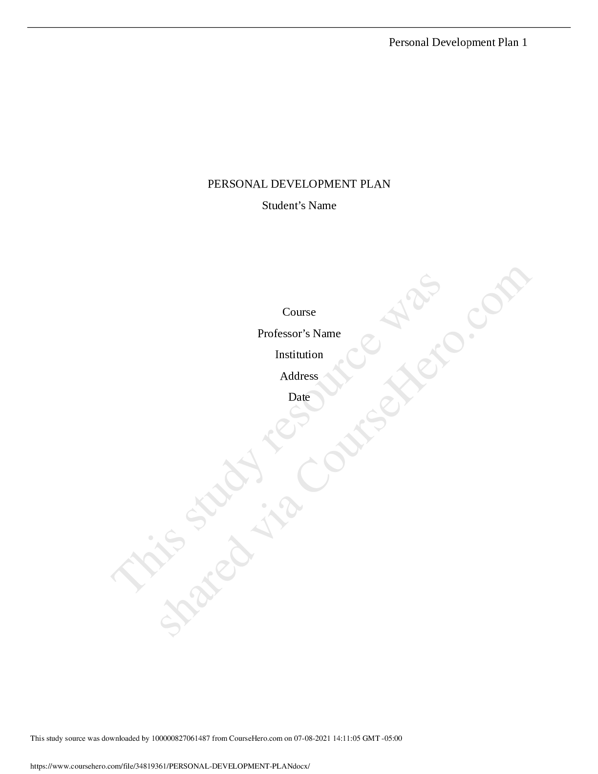 Business > Research Paper > University of Michigan PERSONAL DEVELOPMENT PLAN