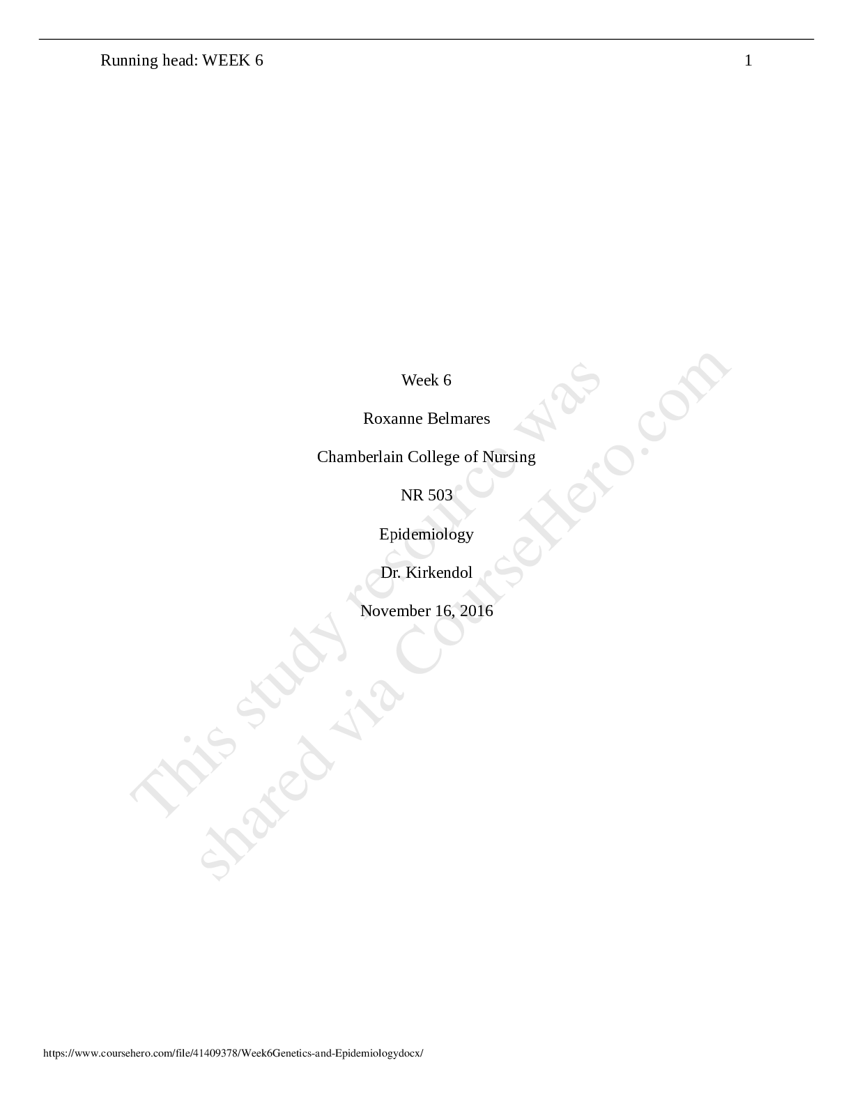 *NURSING > Research Paper > Chamberlain College of Nursing - NR 503Week6Genetics and Epidemiology.