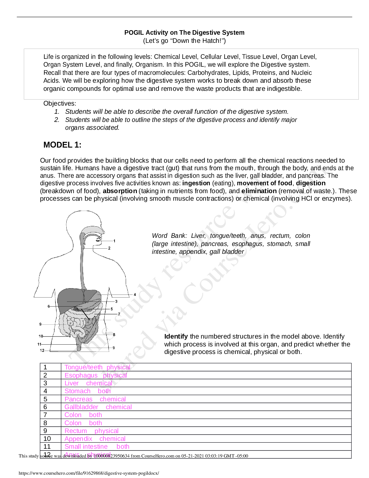 Biology > Research Paper > POGIL Activity on The Digestive System (Let’s go “Down the Hatch!”)