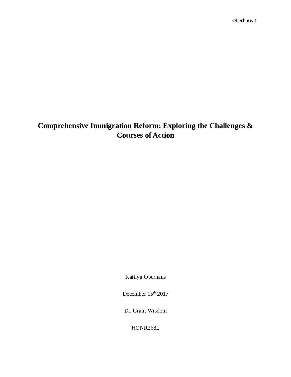 Government > Research Paper > Comprehensive Immigration Reform: Exploring the Challenges & Courses of Action University of Maryland, College ParkHONR 268LFinal policy paper