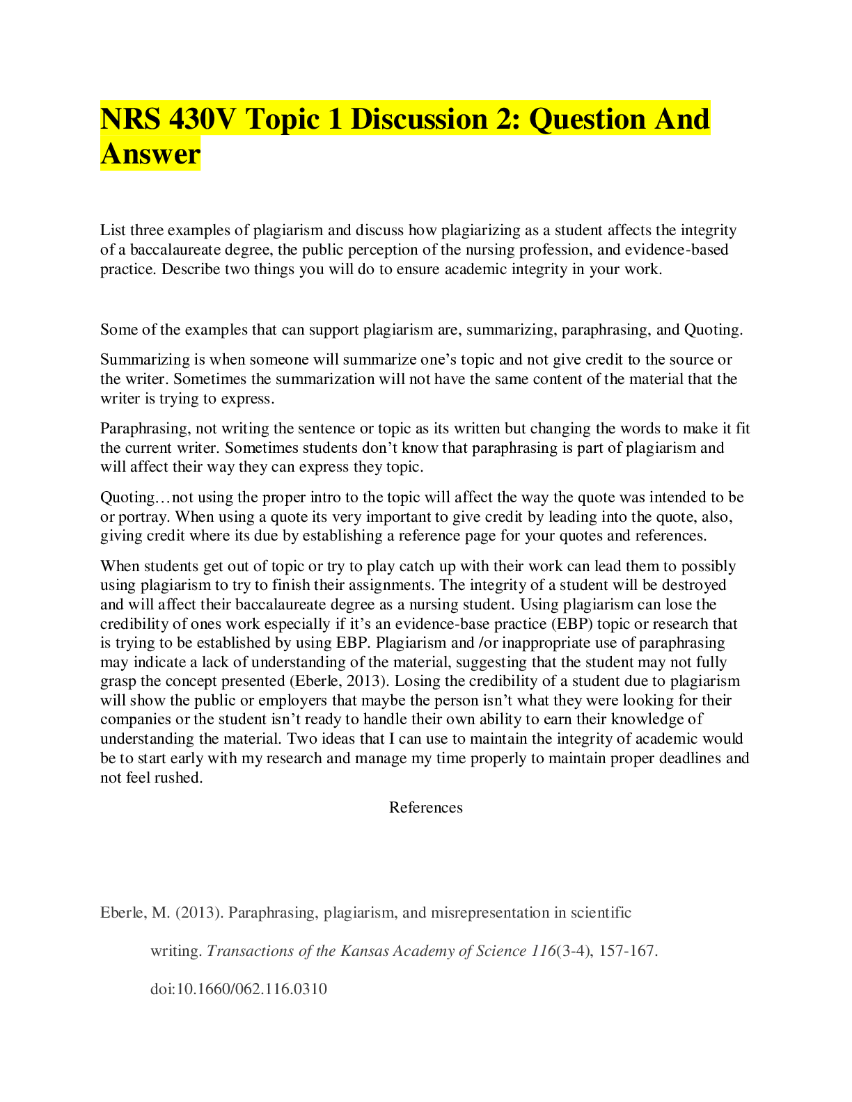*NURSING > DISCUSSION POST > NRS 430V Topic 1 Discussion 2: Question And Answer/FULL SOLUTION