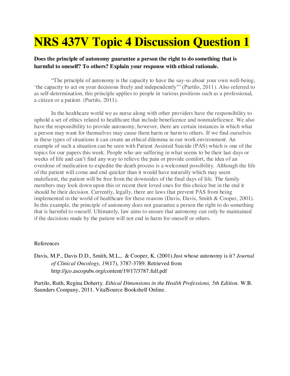 *NURSING > DISCUSSION POST > NRS 437V Topic 4 Discussion Question 1/FULL SOLUTION/RATED A