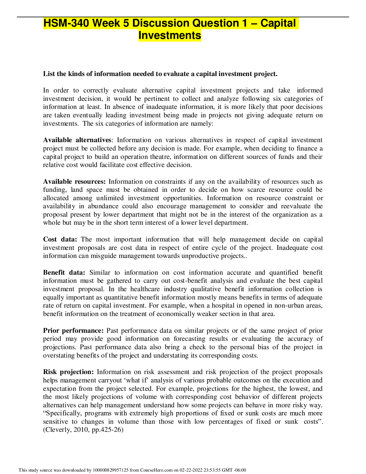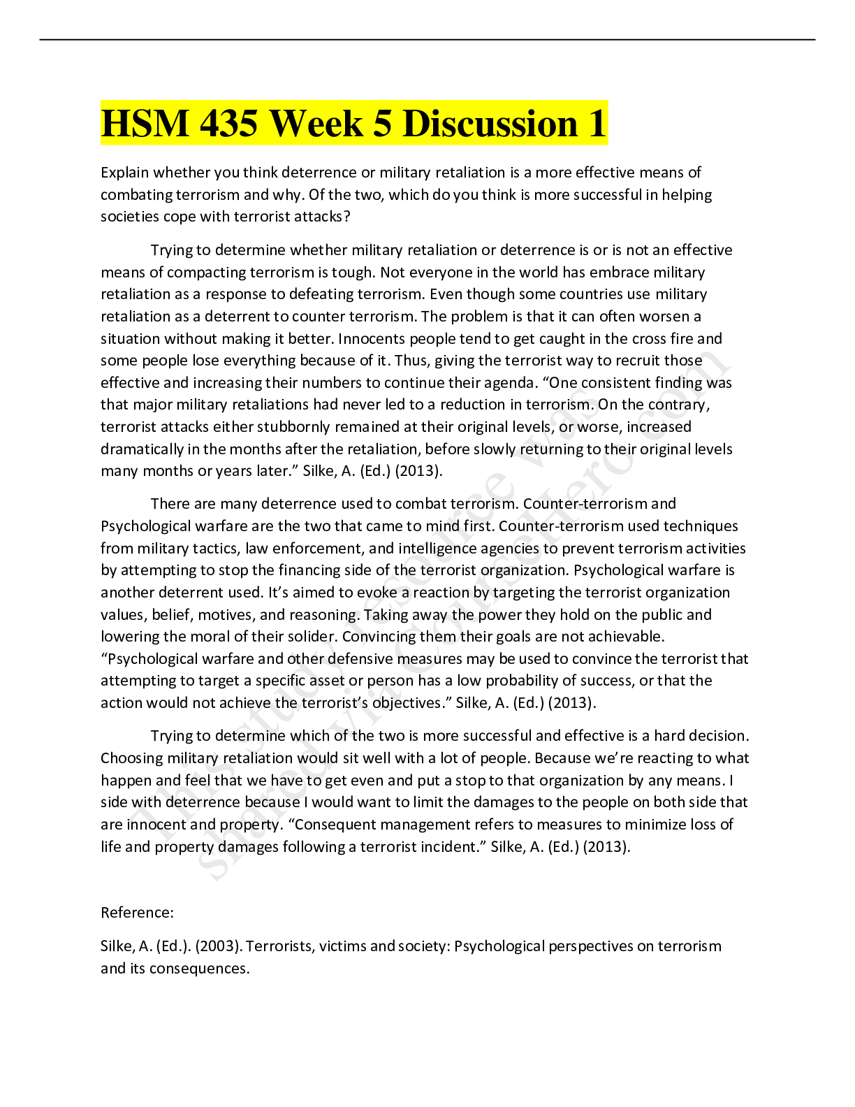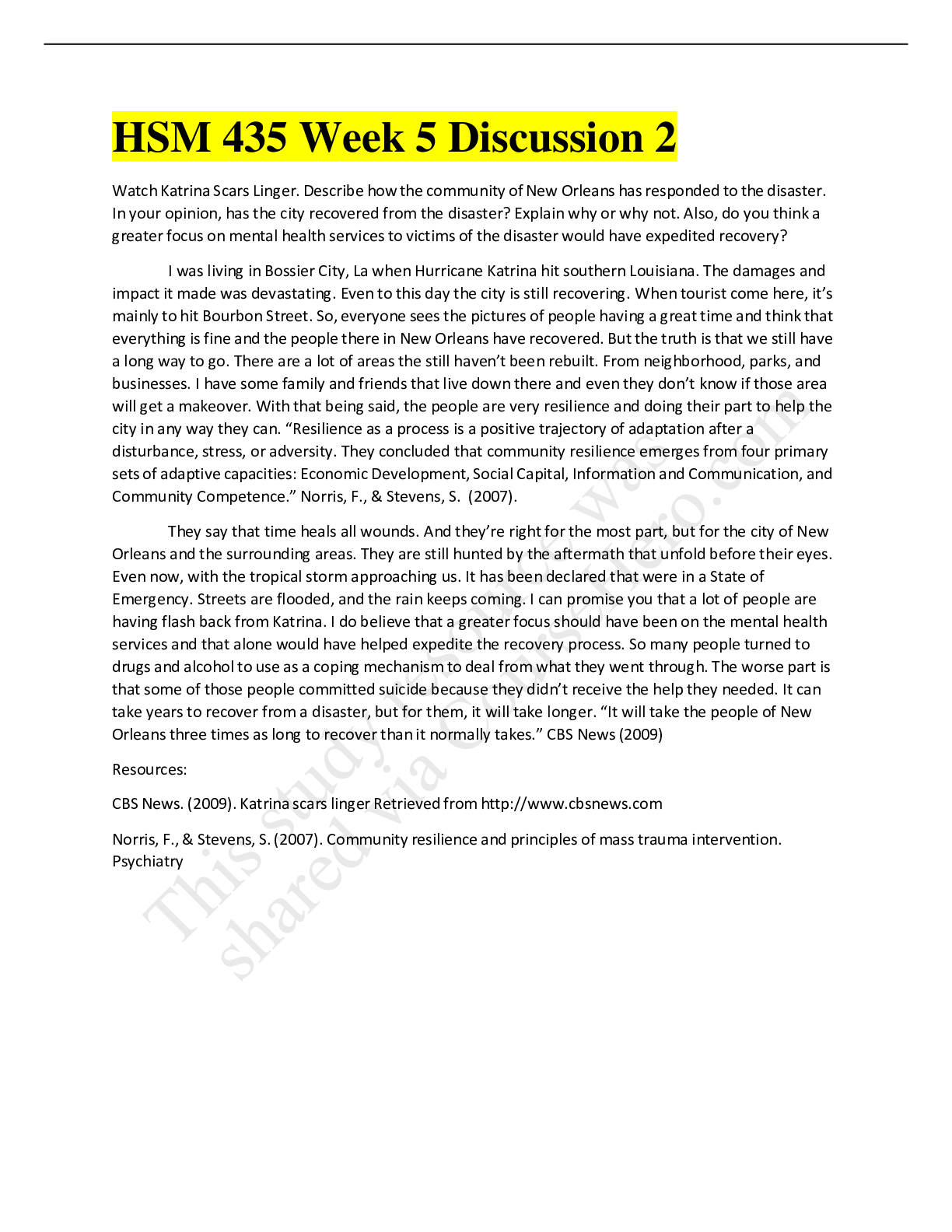 Health Care > DISCUSSION POST > HSM 435 Week 5 Discussion 1/COMPLETE SOLUTION