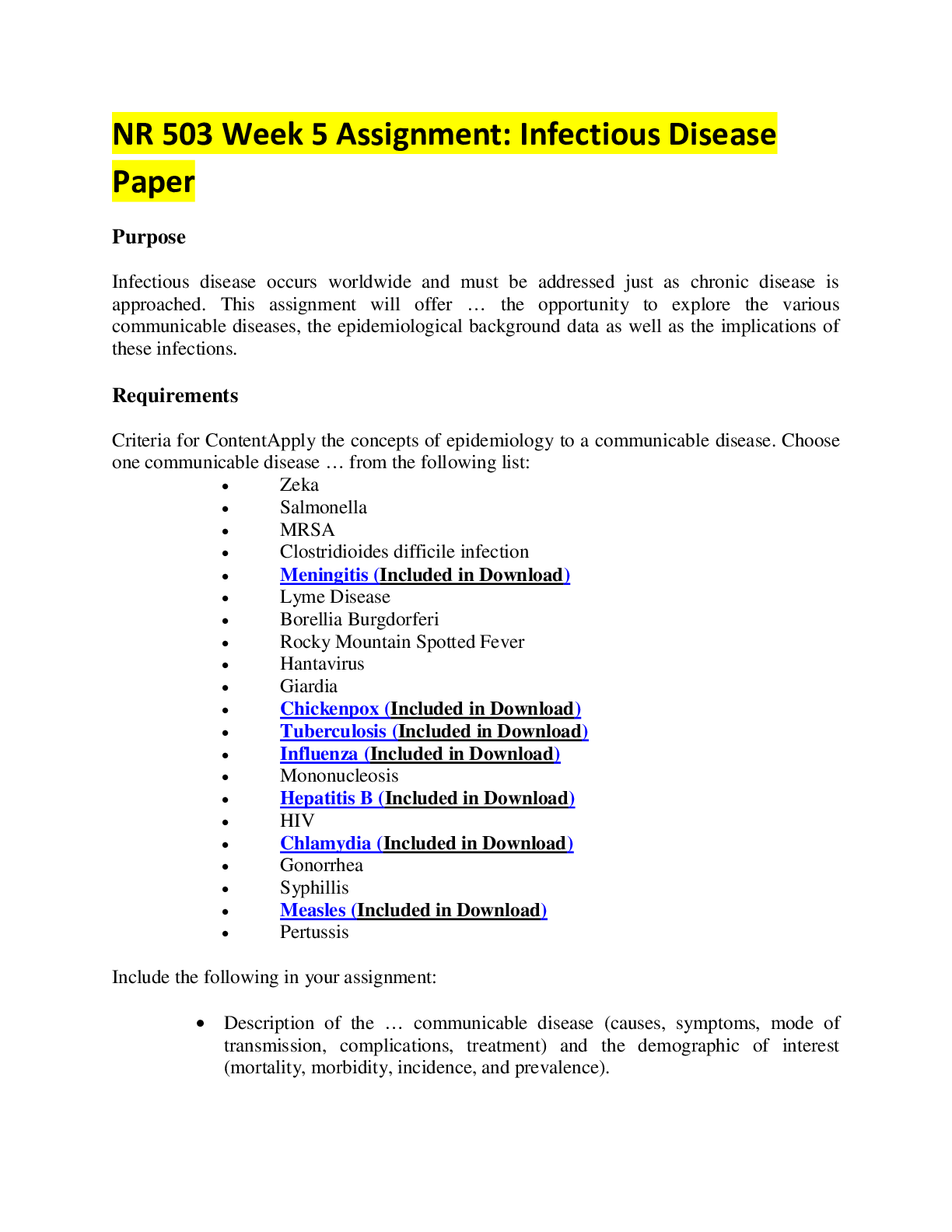 *NURSING > DISCUSSION POST > NR 503 Week 5 Assignment: Infectious Disease Paper/FULL SOLUTION