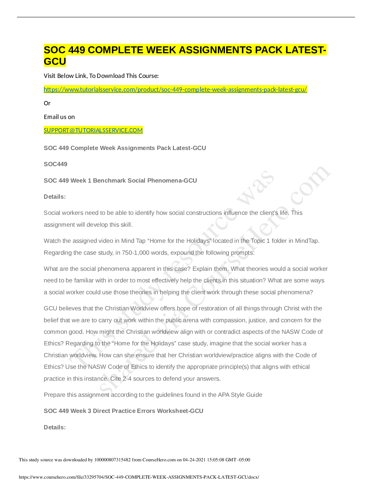 Sociology > DISCUSSION POST > SOC 449 Week 3 Assignment, Direct Practice Errors Worksheet