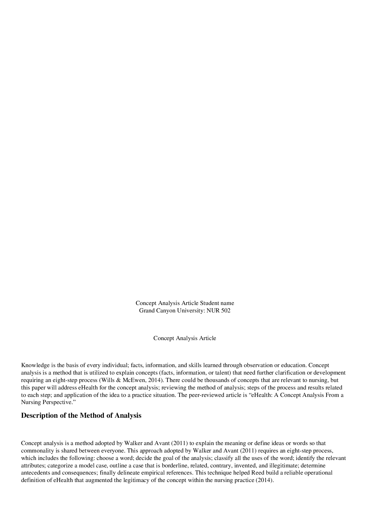*NURSING > DISCUSSION POST > NUR 502 Week 4 - Benchmark Assignment; Application of Concept Analysis to Clinical Practice