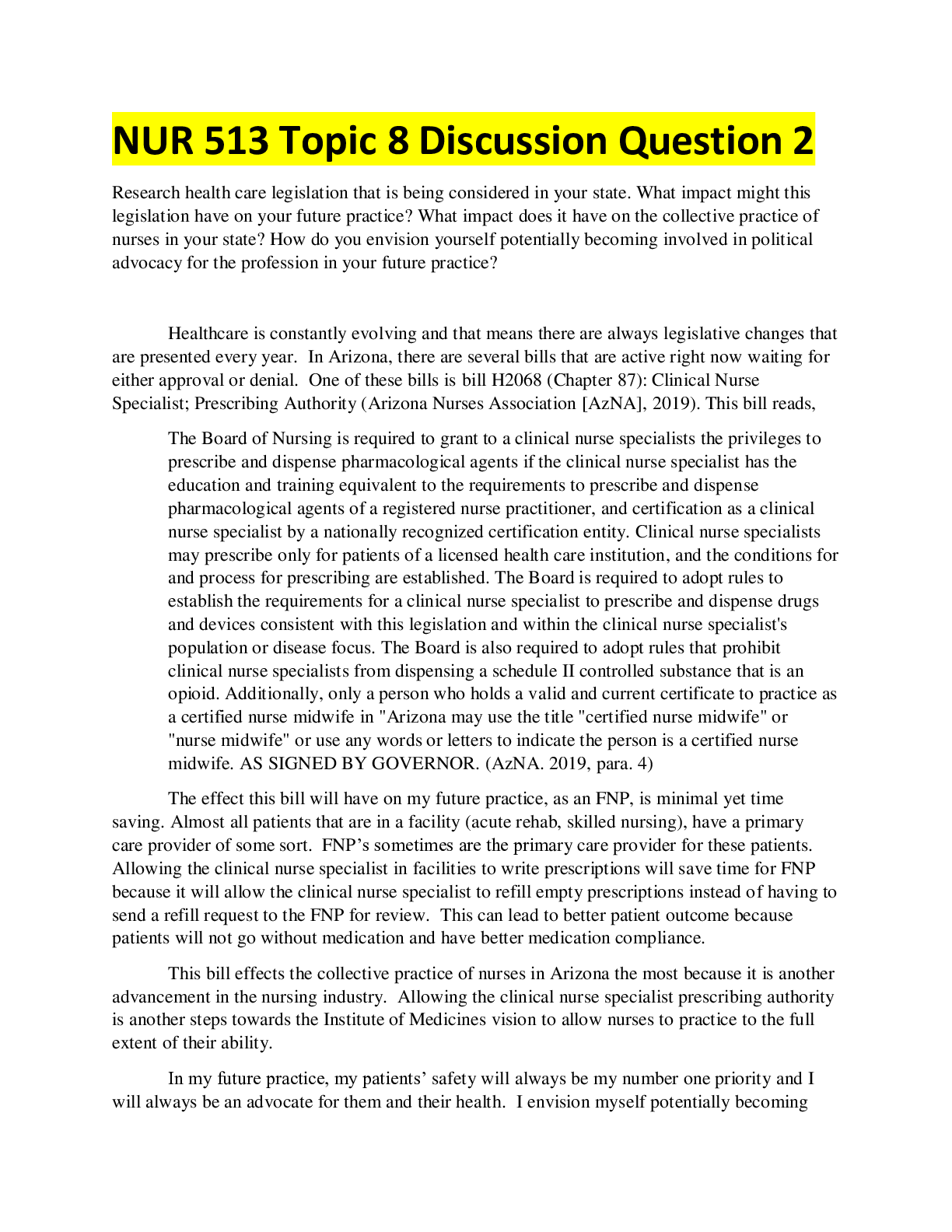 *NURSING > DISCUSSION POST > NUR 513 Topic 8 Discussion Question 1/COMPLETE SOLUTION