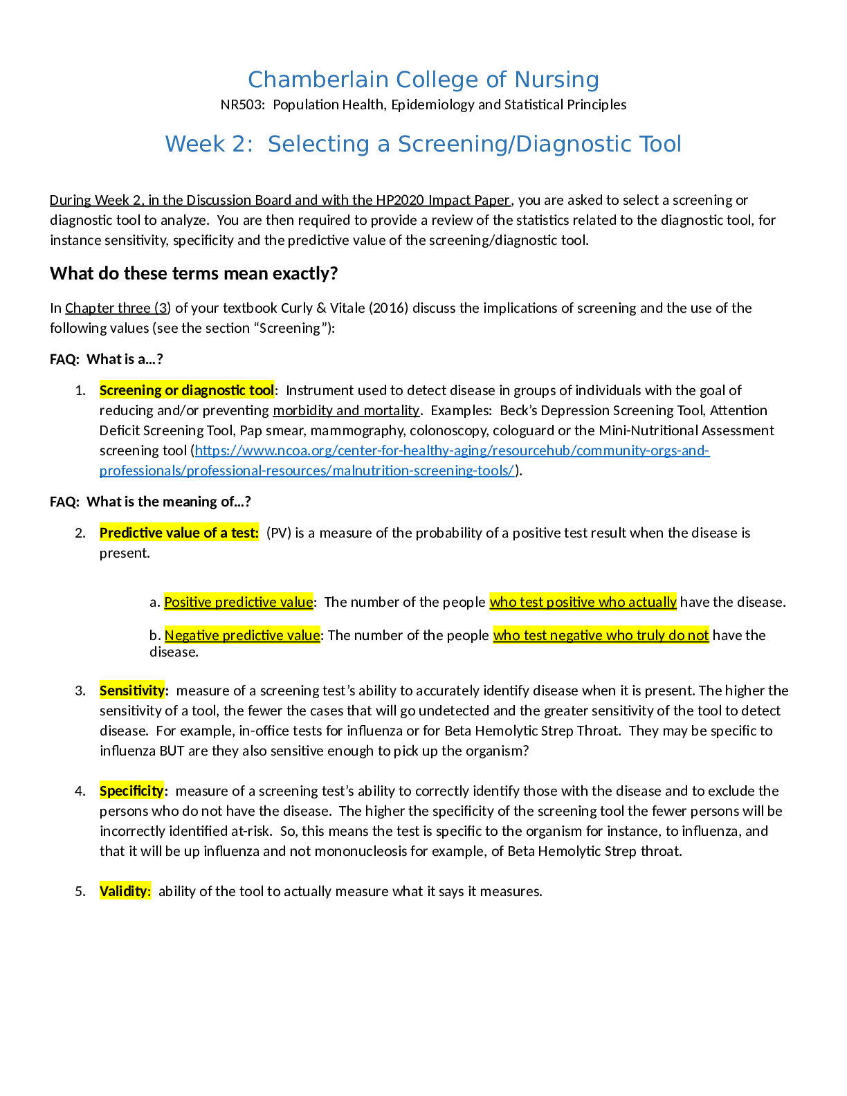 *NURSING > DISCUSSION POST > NR-503 Week 2 Discussion: Epidemiological Methods – Rapid HIV Screening (GRADED A)