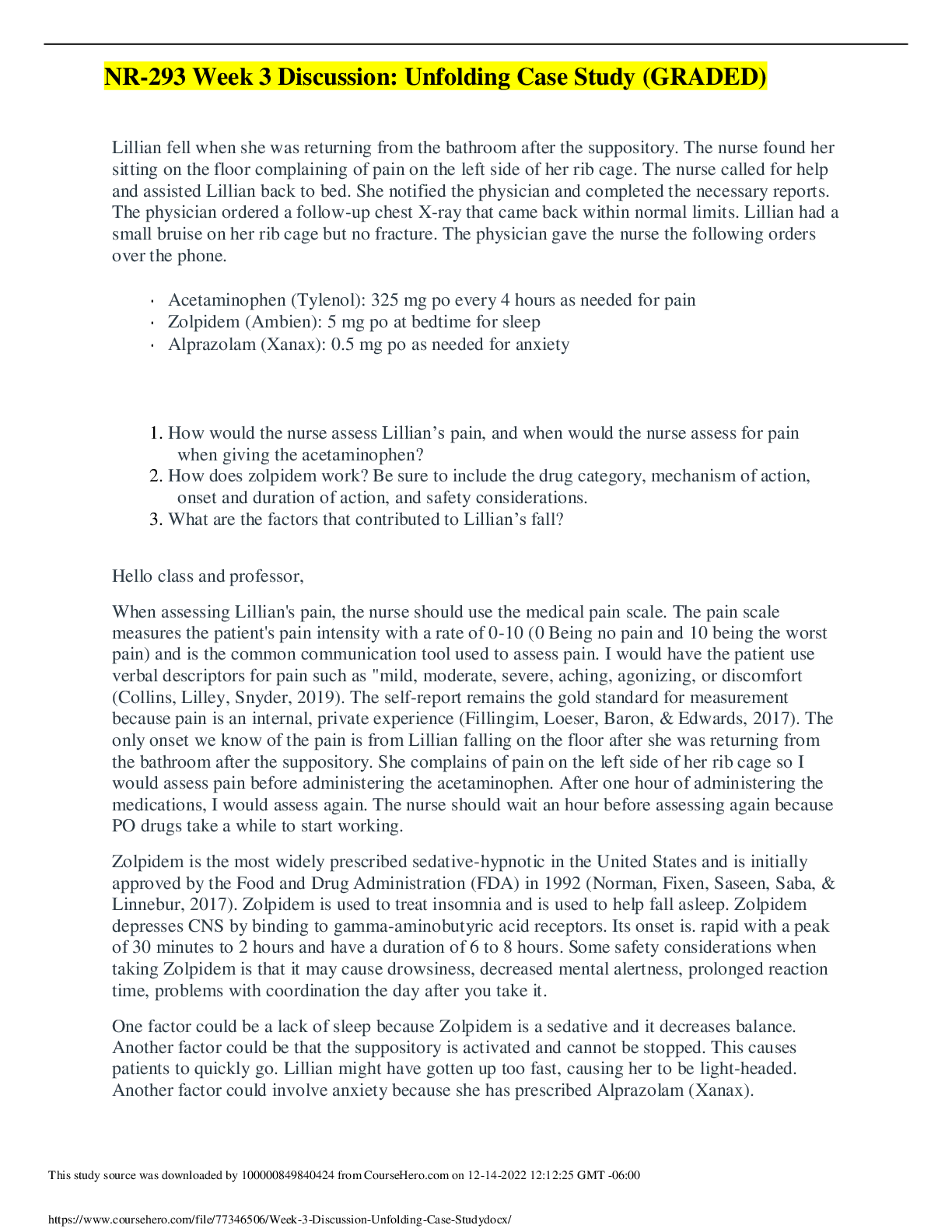 *NURSING > DISCUSSION POST > NR-293 Week 3 Discussion: Unfolding Case Study (GRADED)