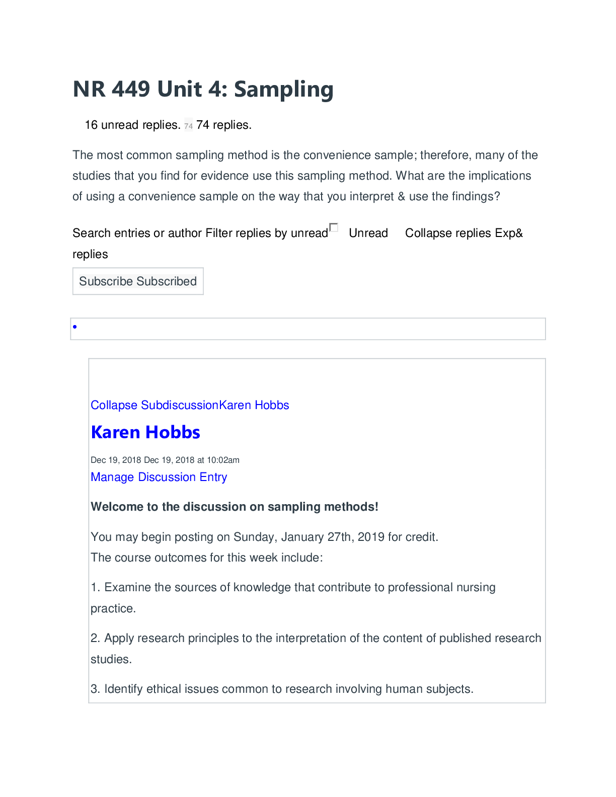 *NURSING > DISCUSSION POST > NR 449 Week 4 Discussion Sampling (V1), 2021 Update Study Guide, Correctly Answered Questions, Test bank Questions and Answers with Explanations (latest Update), 100% Correct, Download to Score A