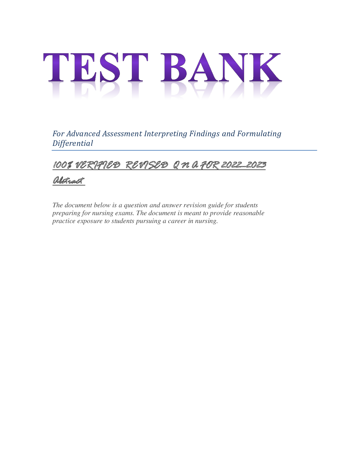 Health Care > DISCUSSION POST > Textbook and test bank for advanced assessment interpreting findings and formulating differential
