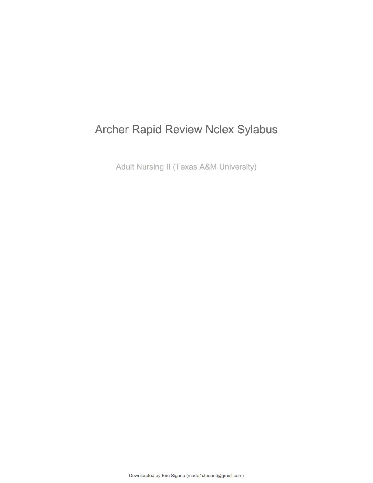 *NURSING > Study Notes > Archer Rapid Review NCLEX Syllabus | Complete Study Guide with Key Concepts & Practice Questions