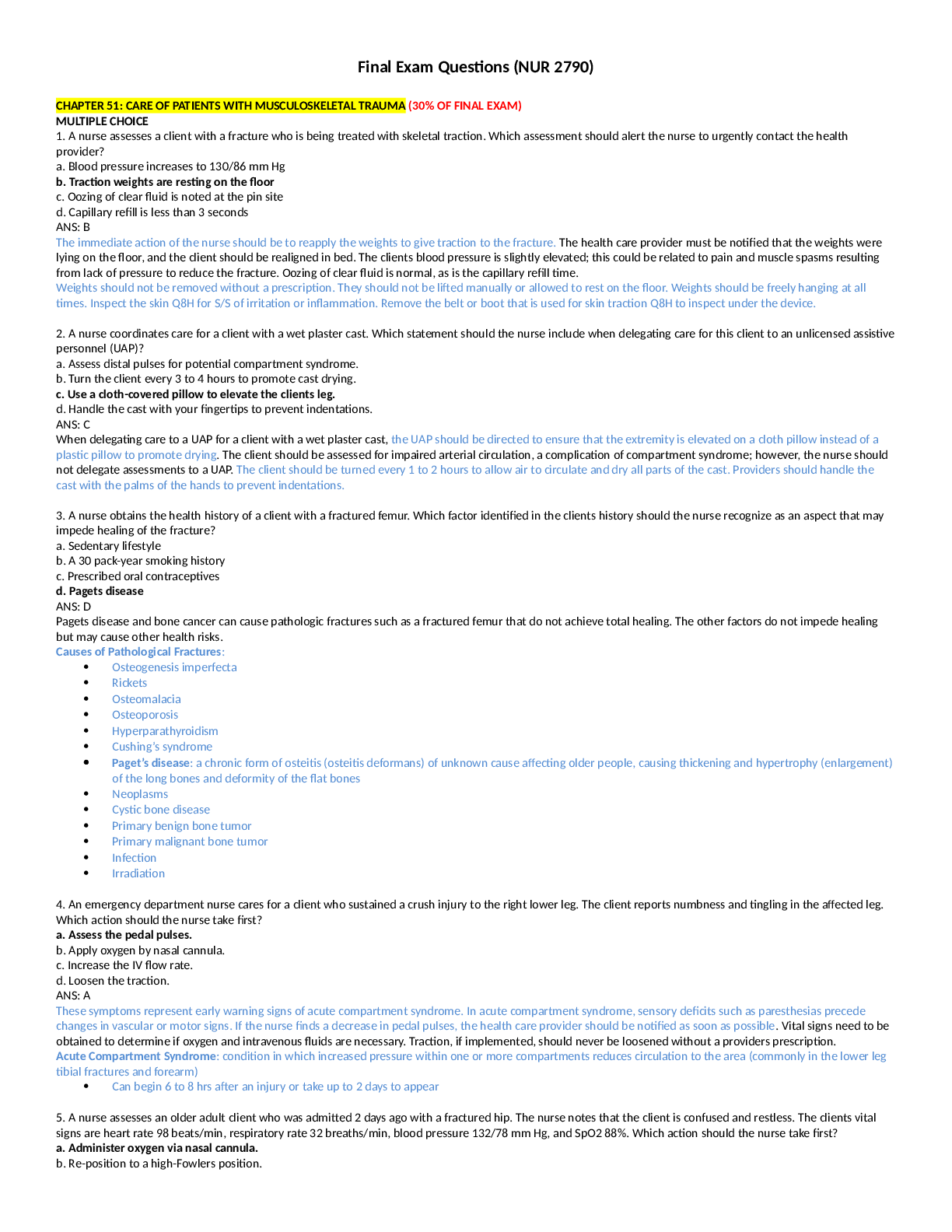 *NURSING > Final Exam Review > NURS 6501N FINAL EXAM NURS-6501N FINAL EXAM |100 Q & A in Each Version, Verified and 100 % Correct