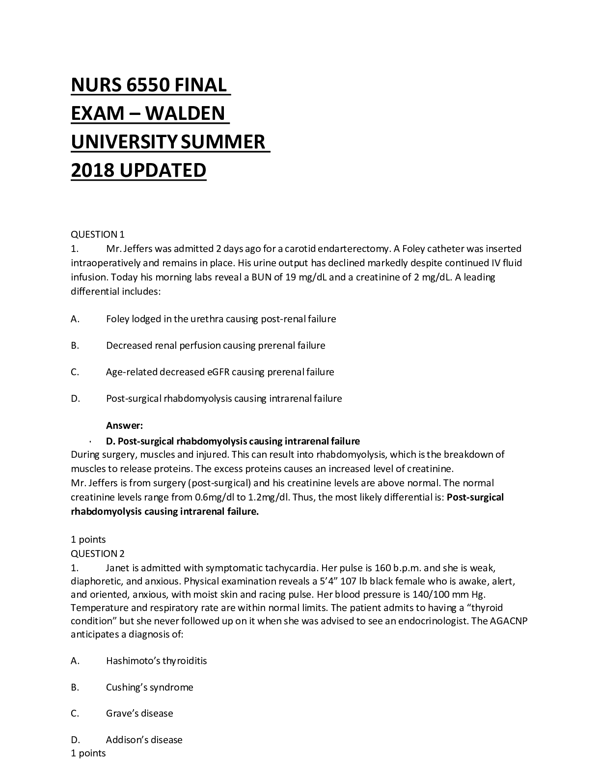 *NURSING > Final Exam Review > NURS 6550 FINAL EXAM – WALDEN UNIVERSITY SUMMER 2018 UPDATED