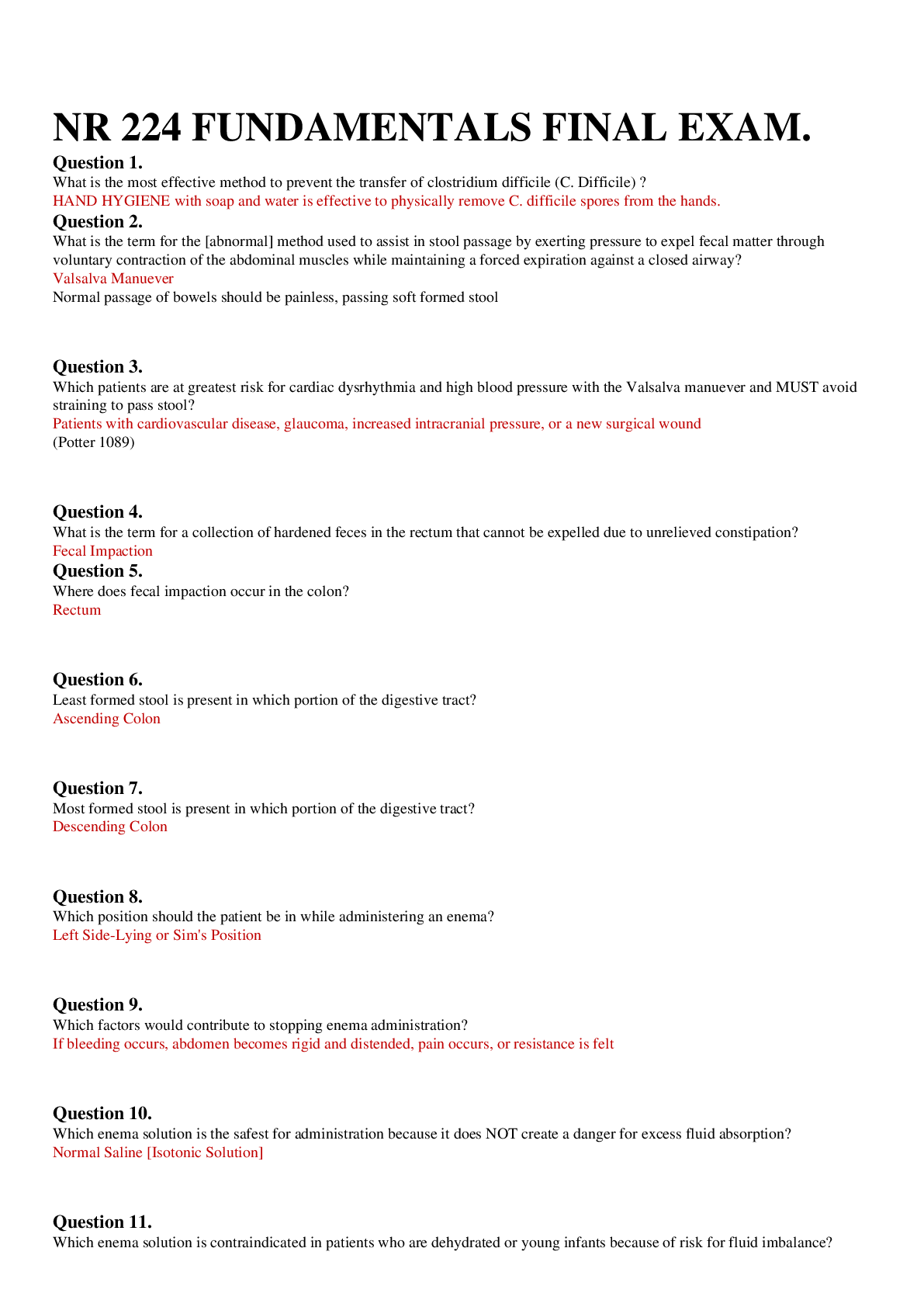 *NURSING > Final Exam Review > NR 224 / NR224 FUNDAMENTALS FINAL EXAM REVIEW. QUESTIONS AND ANSWERS.