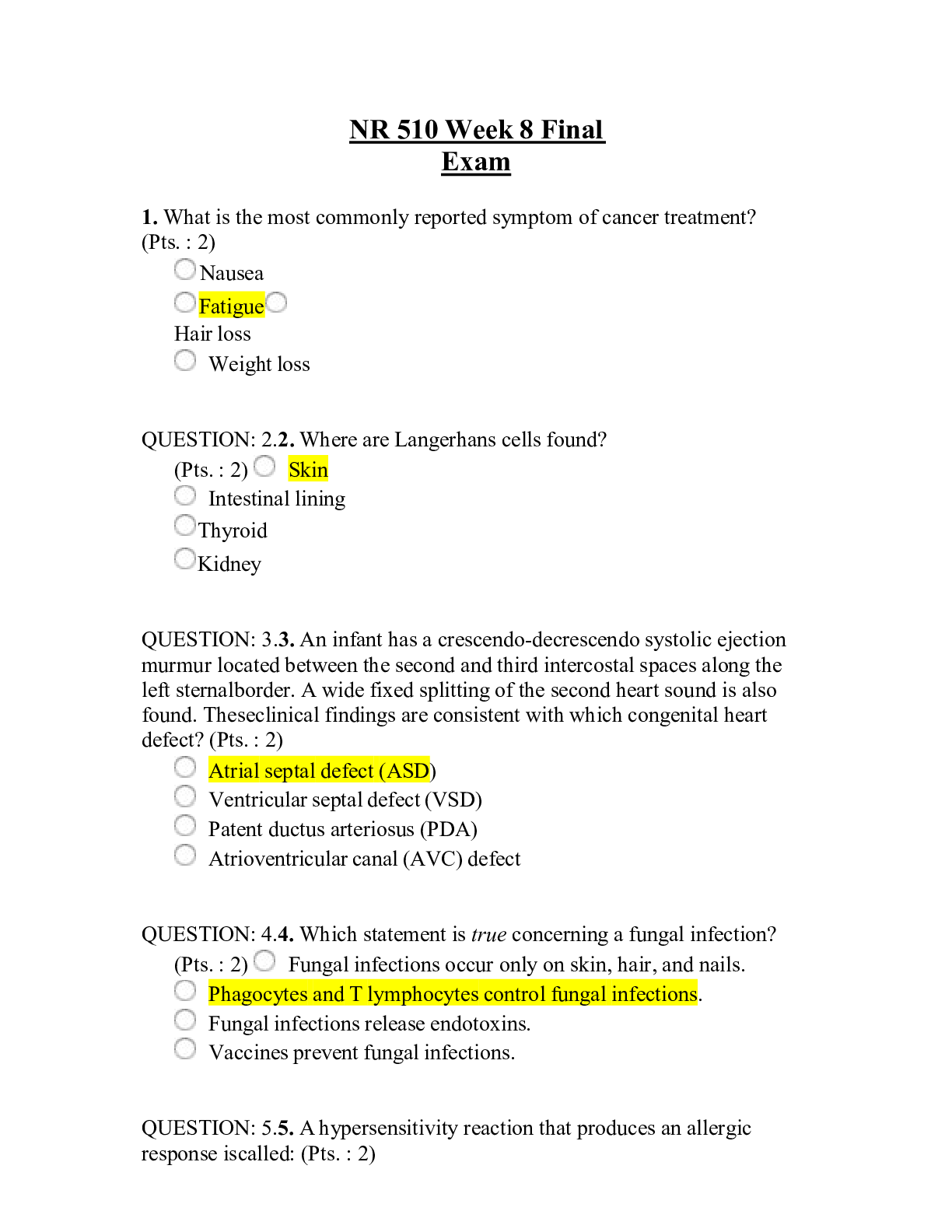 *NURSING > Final Exam Review > NR 510 / NR510 WEEK 8 FINAL EXAM. QUESTIONS AND ANSWERS