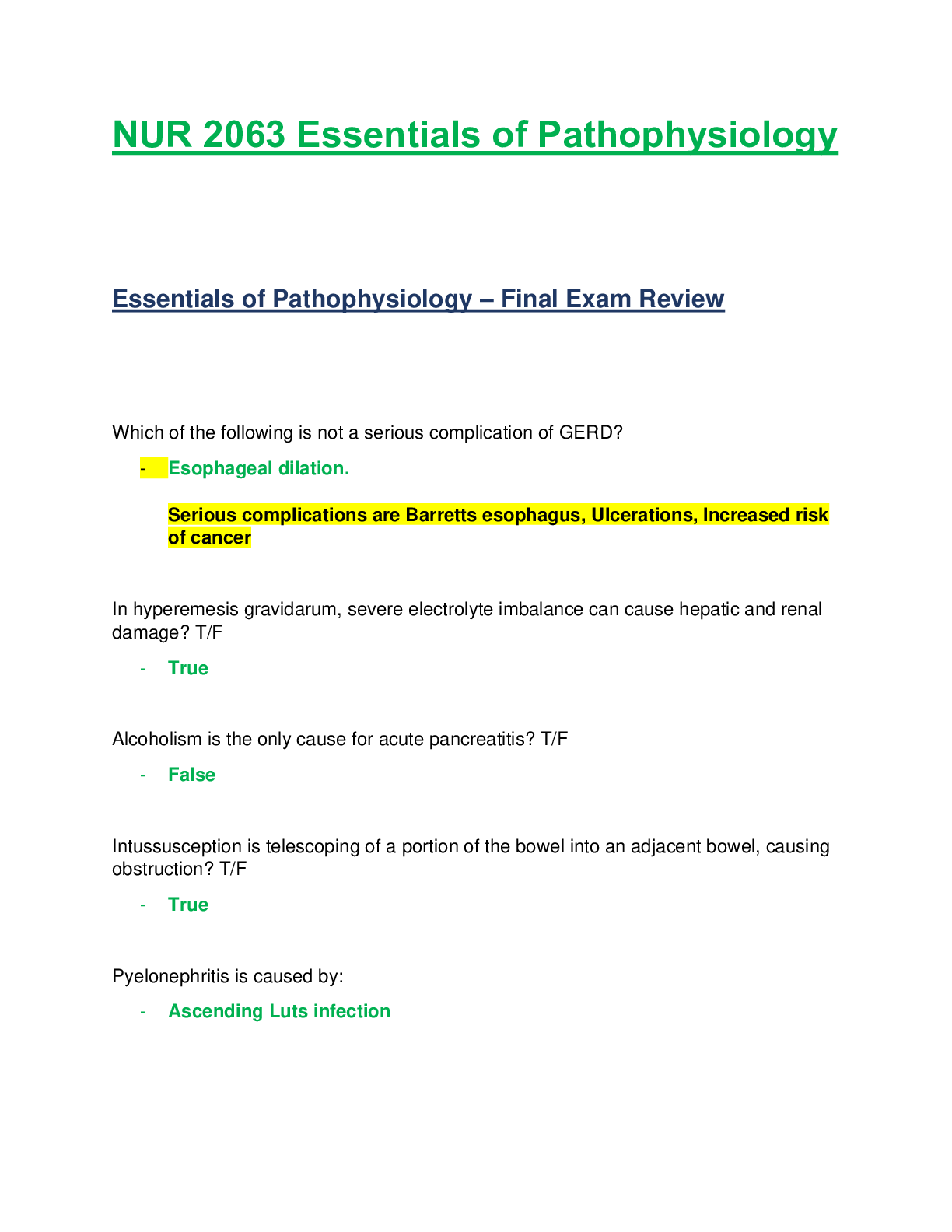 *NURSING > Final Exam Review > NUR 2063 / NUR2063: Essentials of Pathophysiology Final Exam Review (Latest Update) Rasmussen