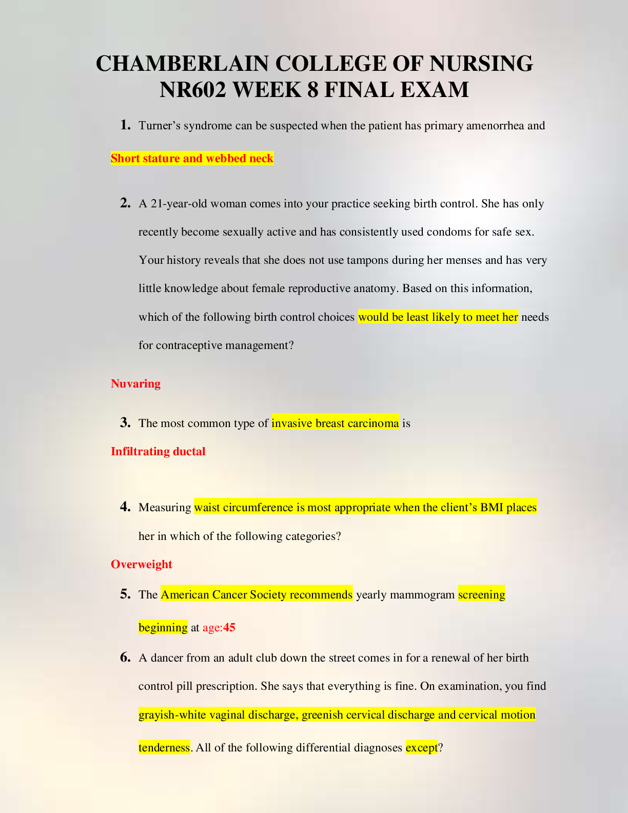*NURSING > Final Exam Review > CHAMBERLAIN COLLEGE OF NURSING NR602 WEEK 8 FINAL EXAM