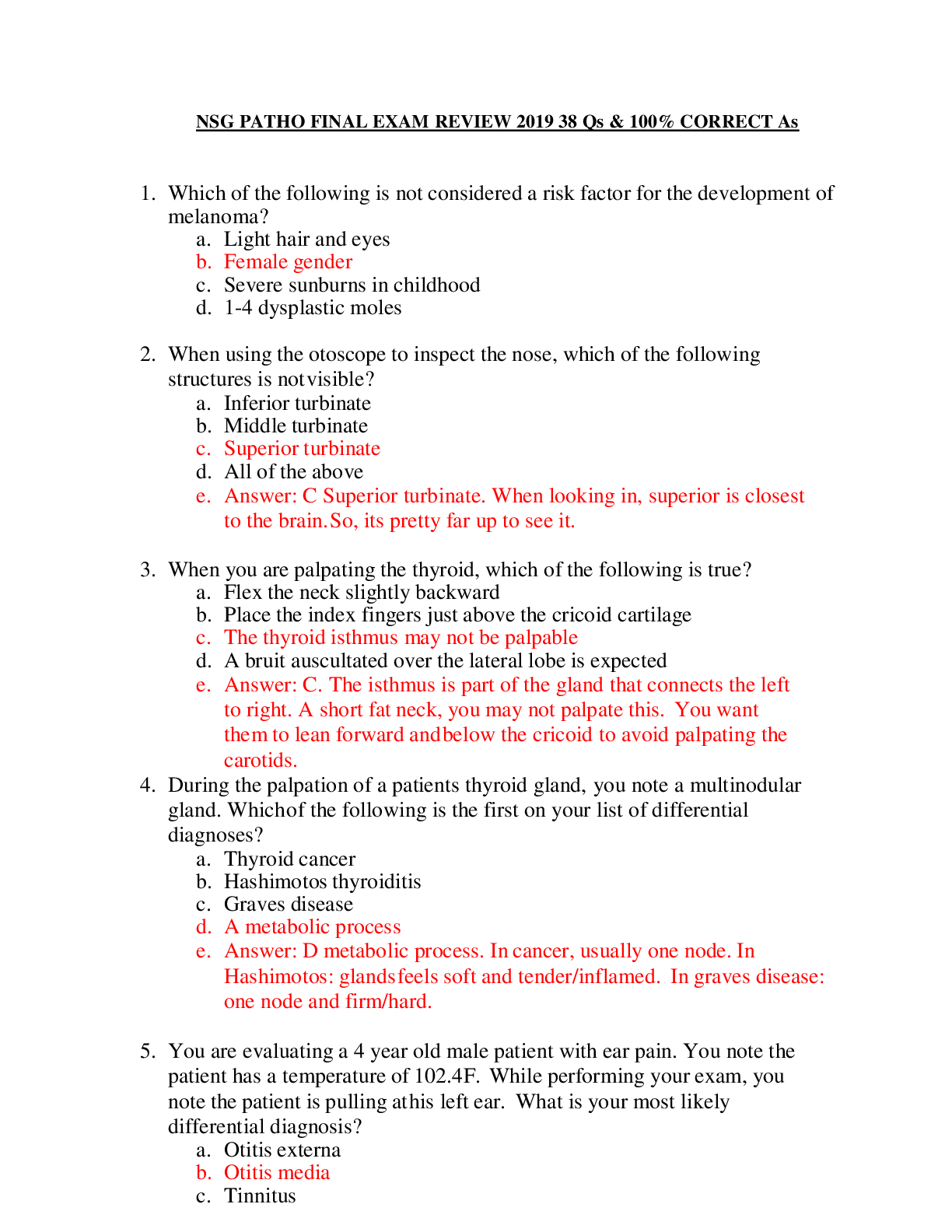 *NURSING > Final Exam Review > NSG PATHO FINAL EXAM REVIEW 2019 38 Qs & 100% CORRECT As