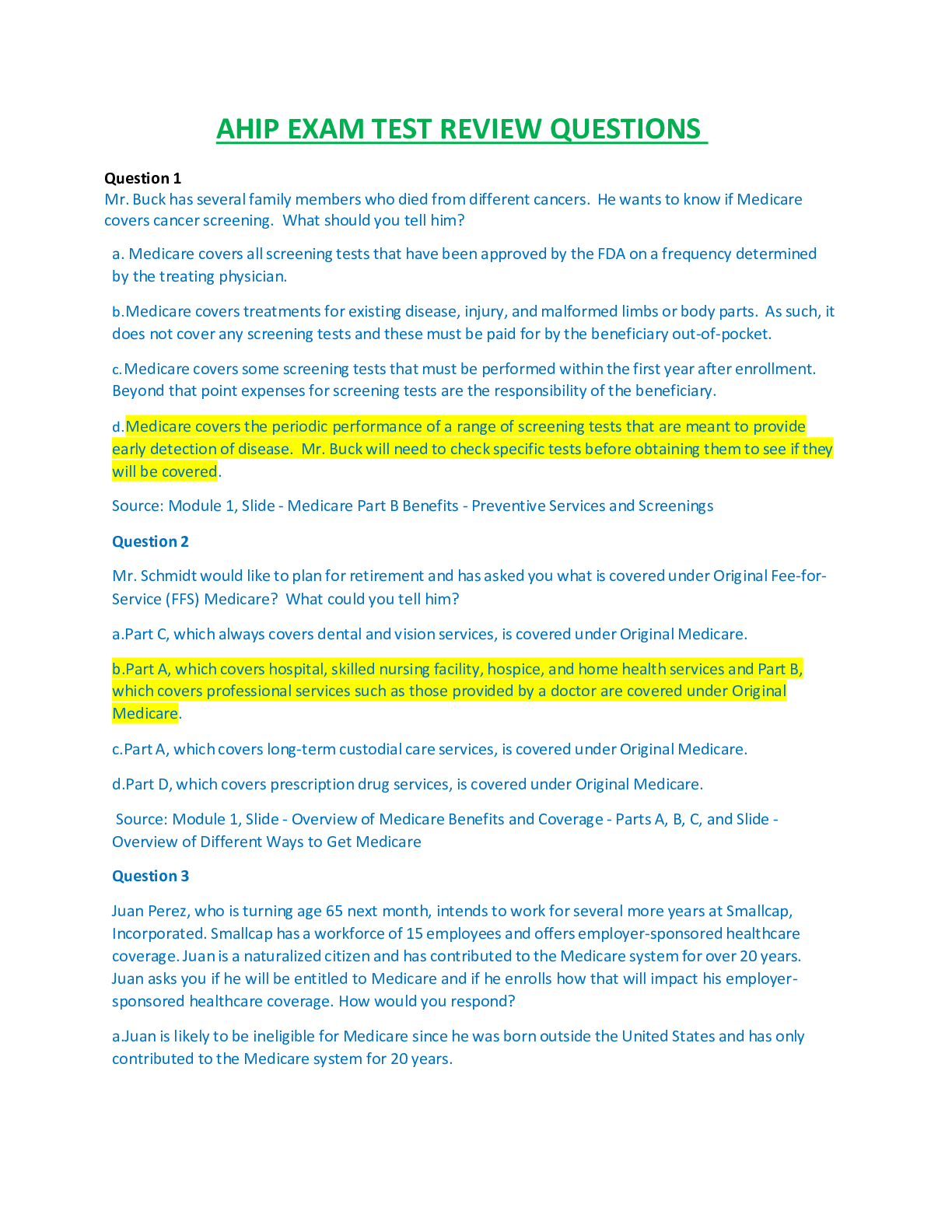*NURSING > EXAM REVIEW > AHIP EXAM REVIEW TEST QUESTIONS AND ANSWERS LATEST UPDATED SOLUTIONS